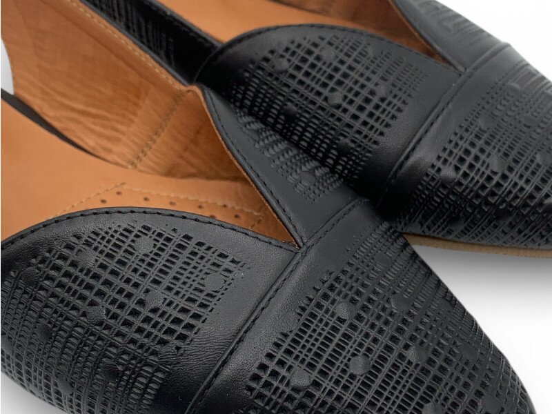 PS Elia jsou dámské kožené baleríny s otevřenou patou, které kombinují lehkost, ženskost a pohodlí pro každodenní nošení. Jemně špičatá špička dodává botě elegantní siluetu a opticky prodlužuje nohu, zatímco otevřená pata se zapínáním na pásek přináší větší volnost a přirozený komfort při chůzi.