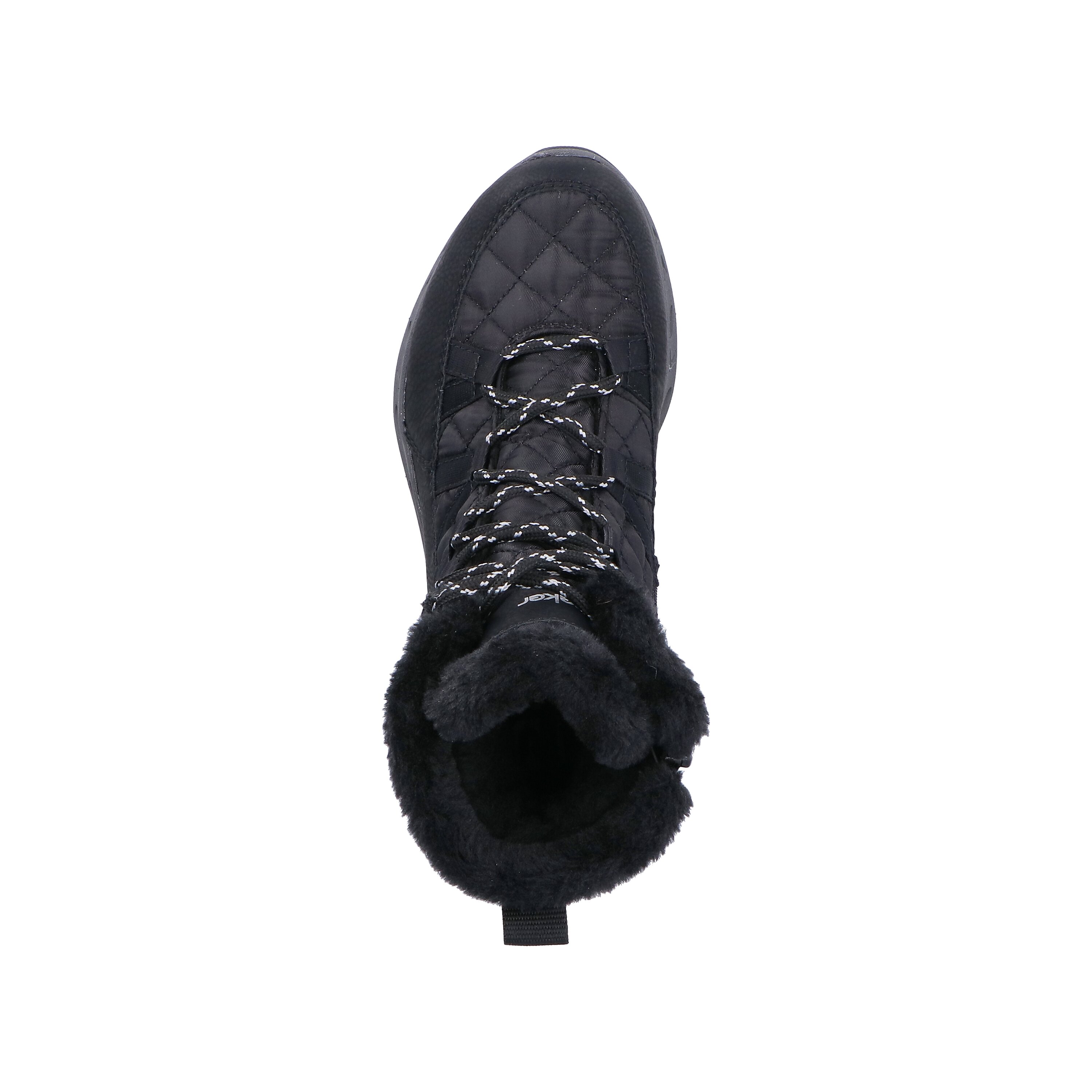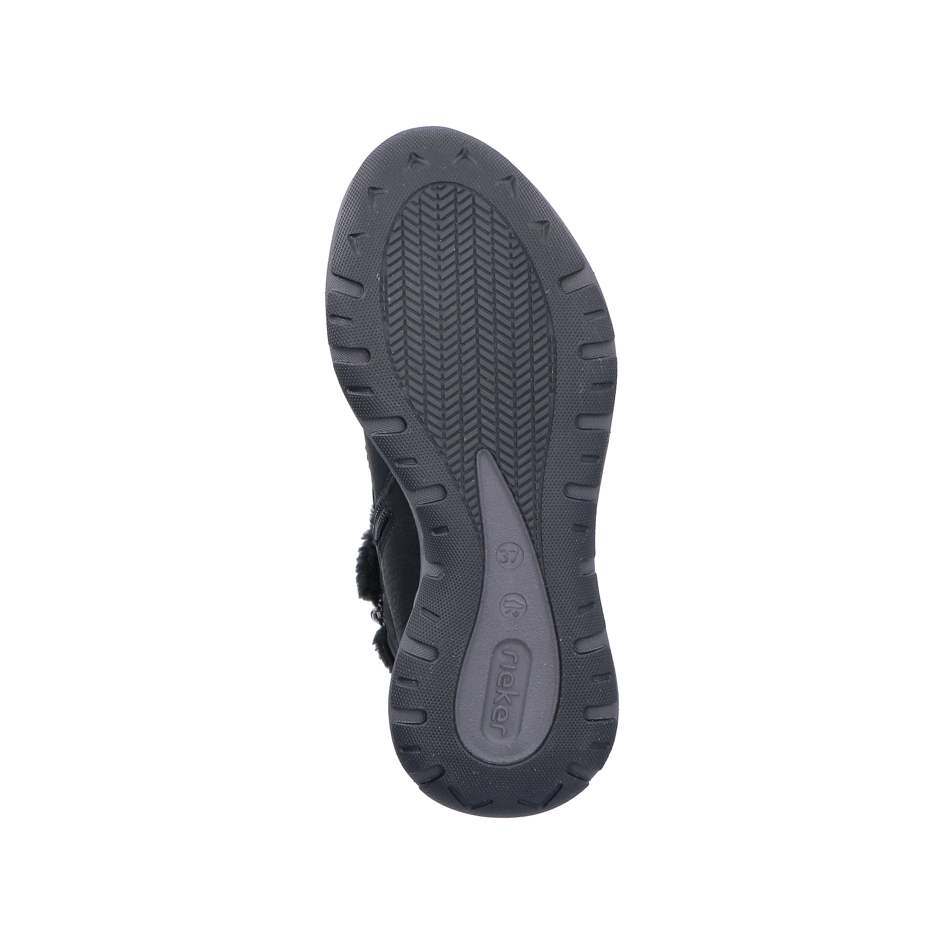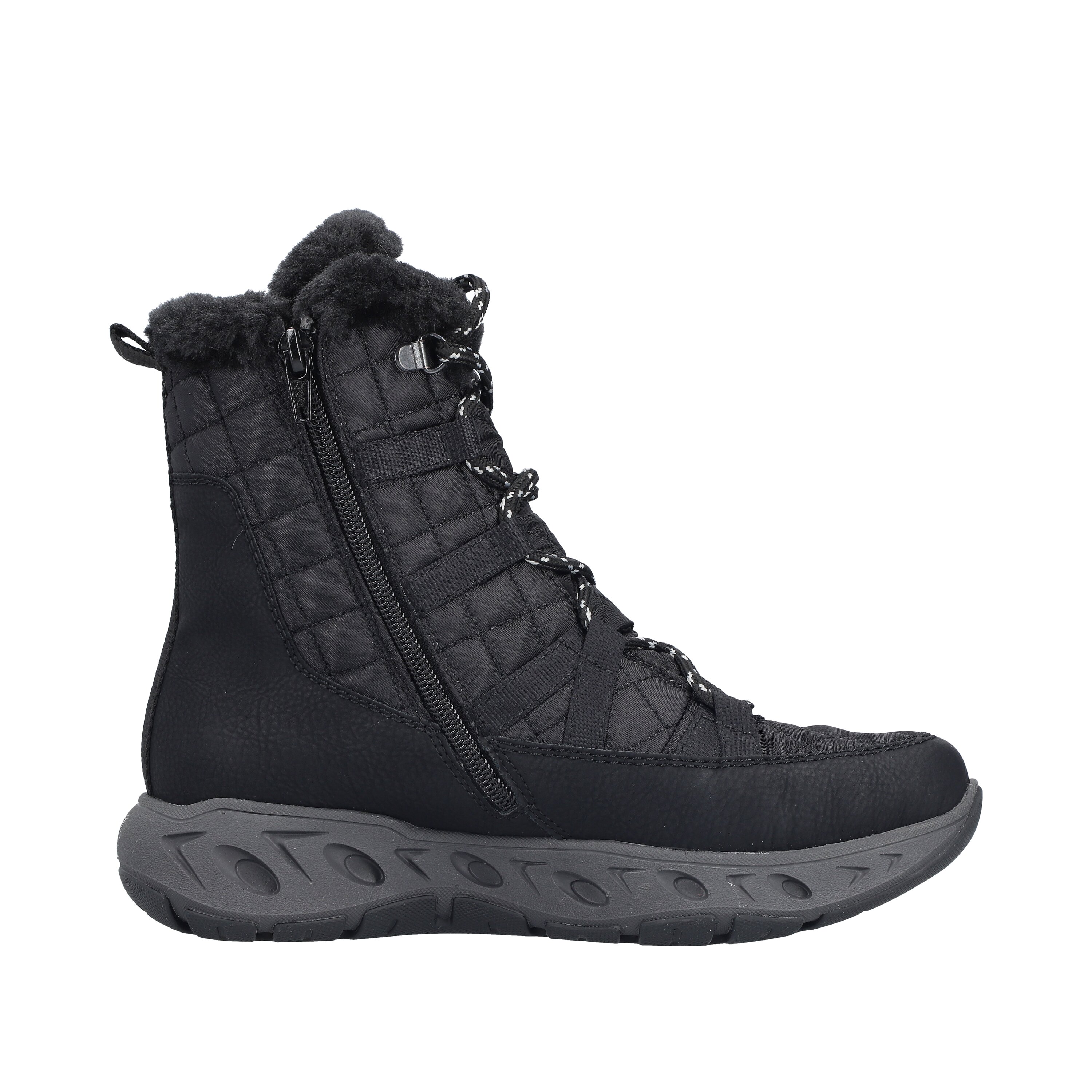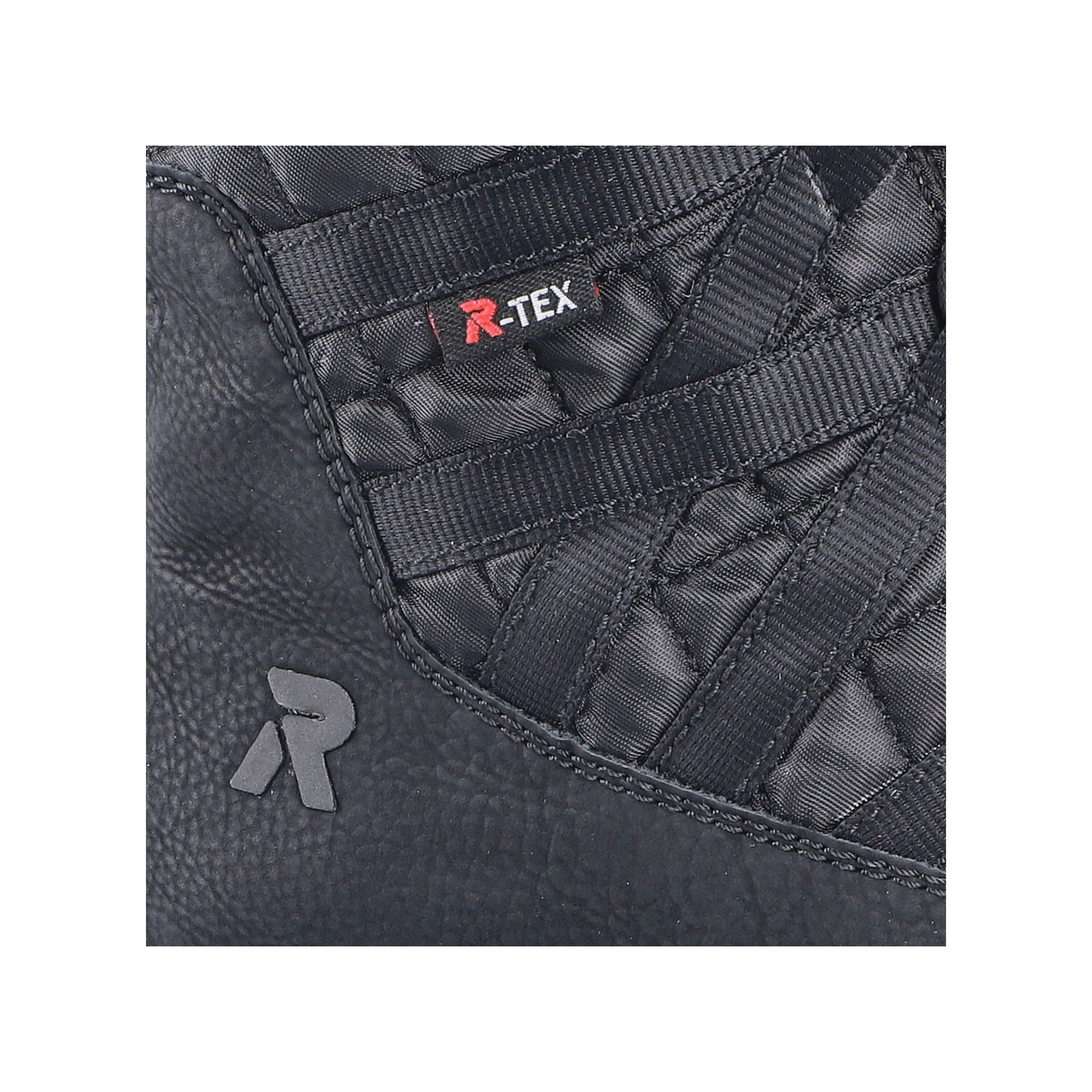 Dámská kotníková obuv se zateplením a tex membránou zabrání pronikání chladu a vlhkosti a udrží tak vaše nohy v suchu a teple. Vrchní materiál je kombinace textilu a syntetiky. Vntřní materiál je textil. Stélka je vyměkčená, s paměťovou pěnou, vyjímatelná. Obuv je zateplena a je opatřena Rieker Tex membránou. Podešev je syntetická, flexibilní. Výška podpatku je 4,2 cm. Barva u tohoto vzoru je černá.