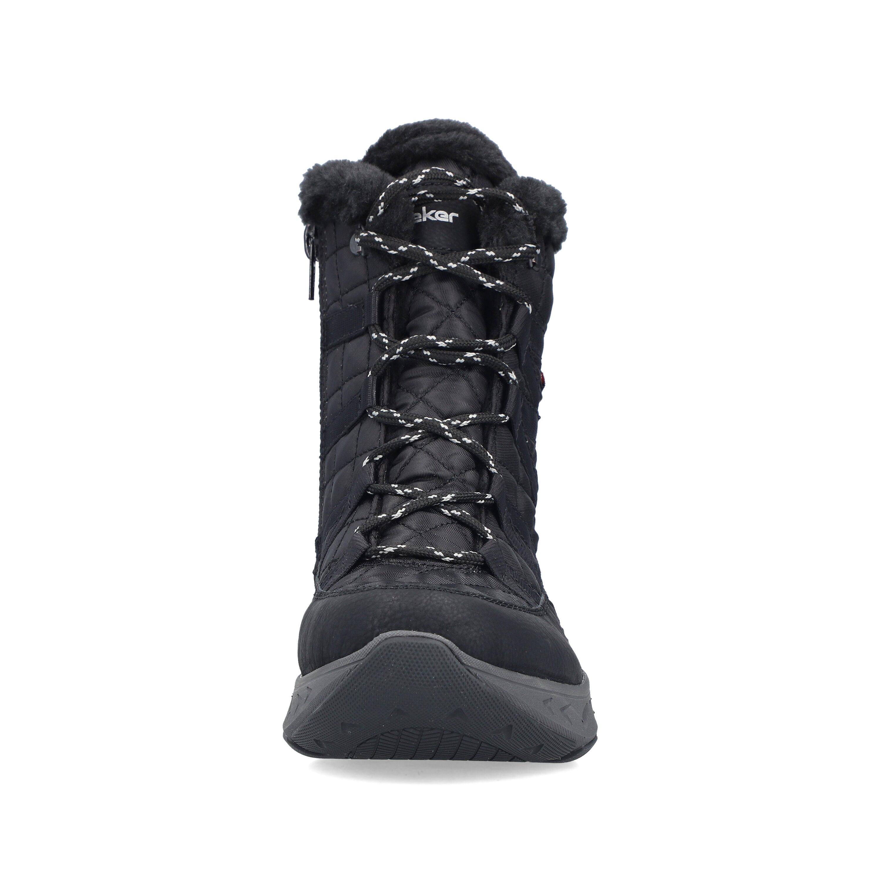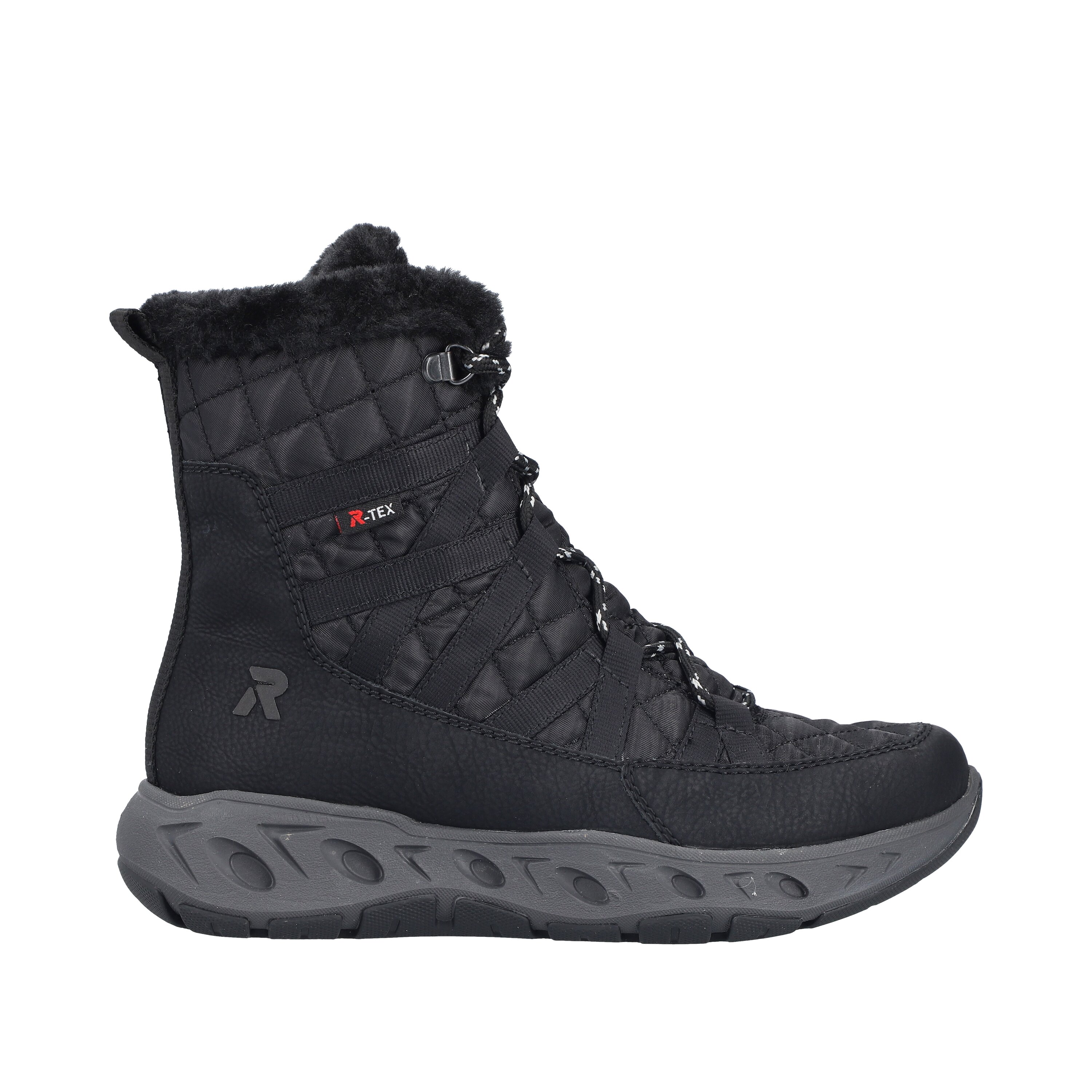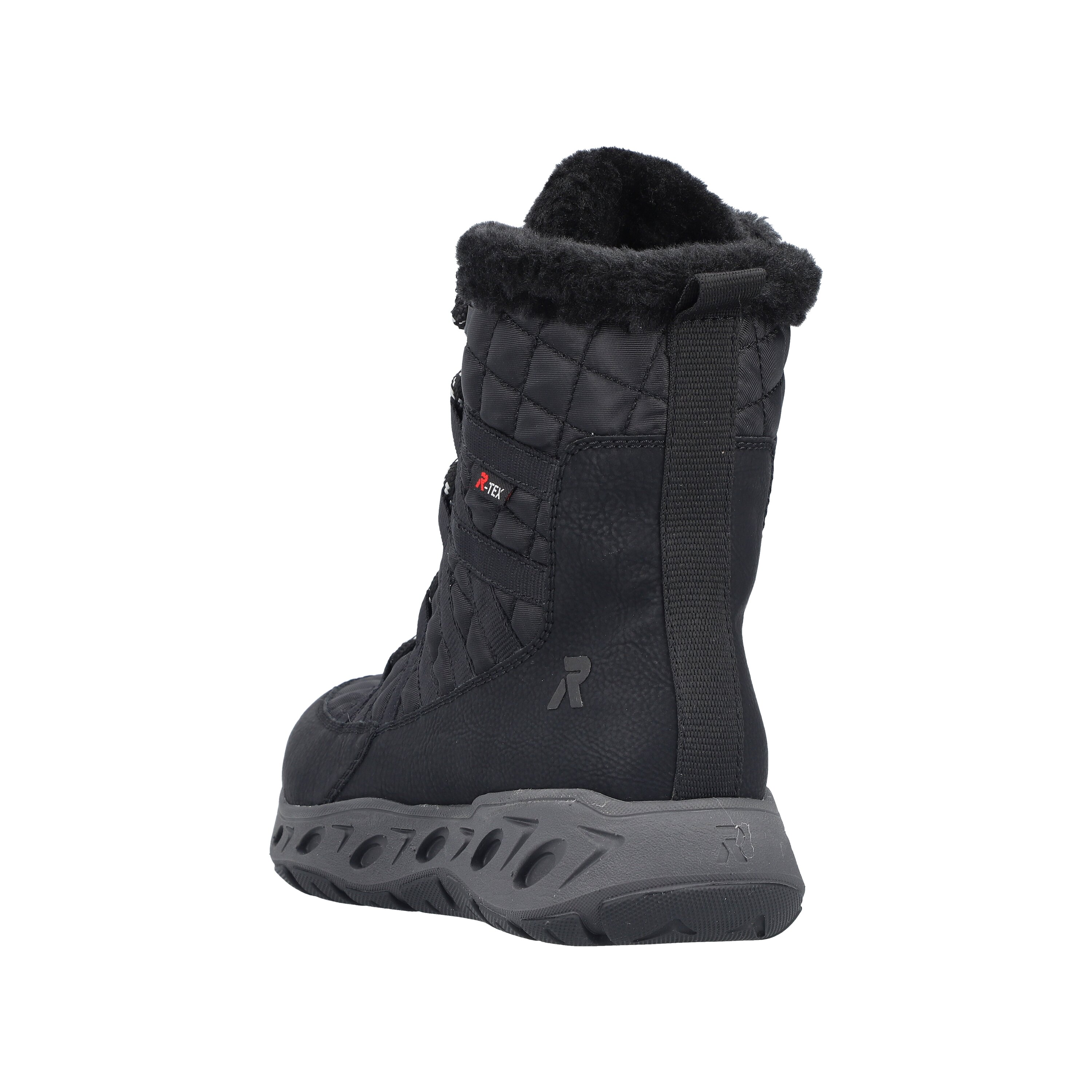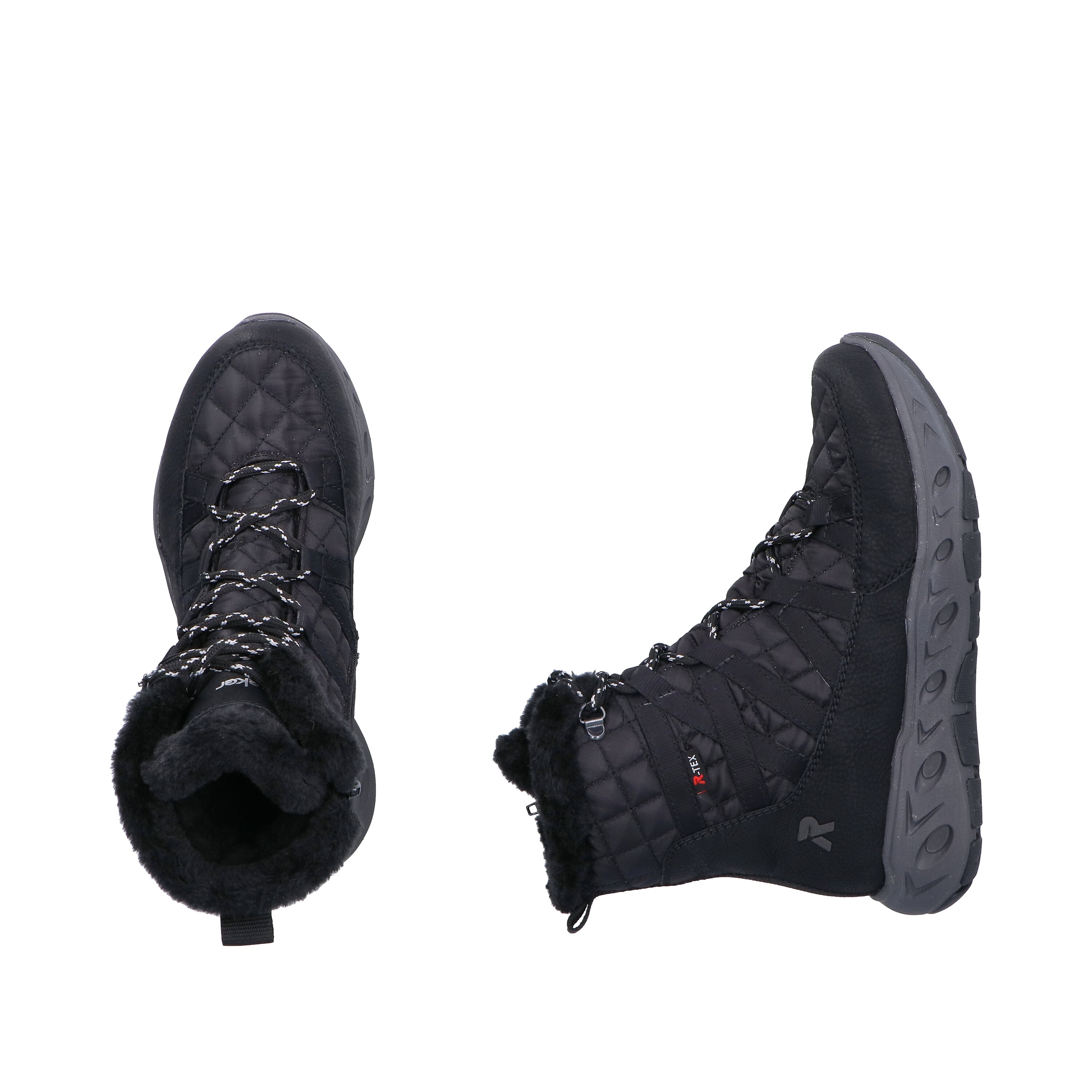 Dámská kotníková obuv se zateplením a tex membránou zabrání pronikání chladu a vlhkosti a udrží tak vaše nohy v suchu a teple. Vrchní materiál je kombinace textilu a syntetiky. Vntřní materiál je textil. Stélka je vyměkčená, s paměťovou pěnou, vyjímatelná. Obuv je zateplena a je opatřena Rieker Tex membránou. Podešev je syntetická, flexibilní. Výška podpatku je 4,2 cm. Barva u tohoto vzoru je černá.