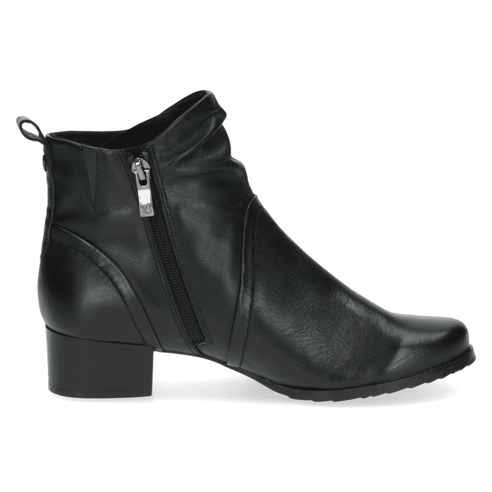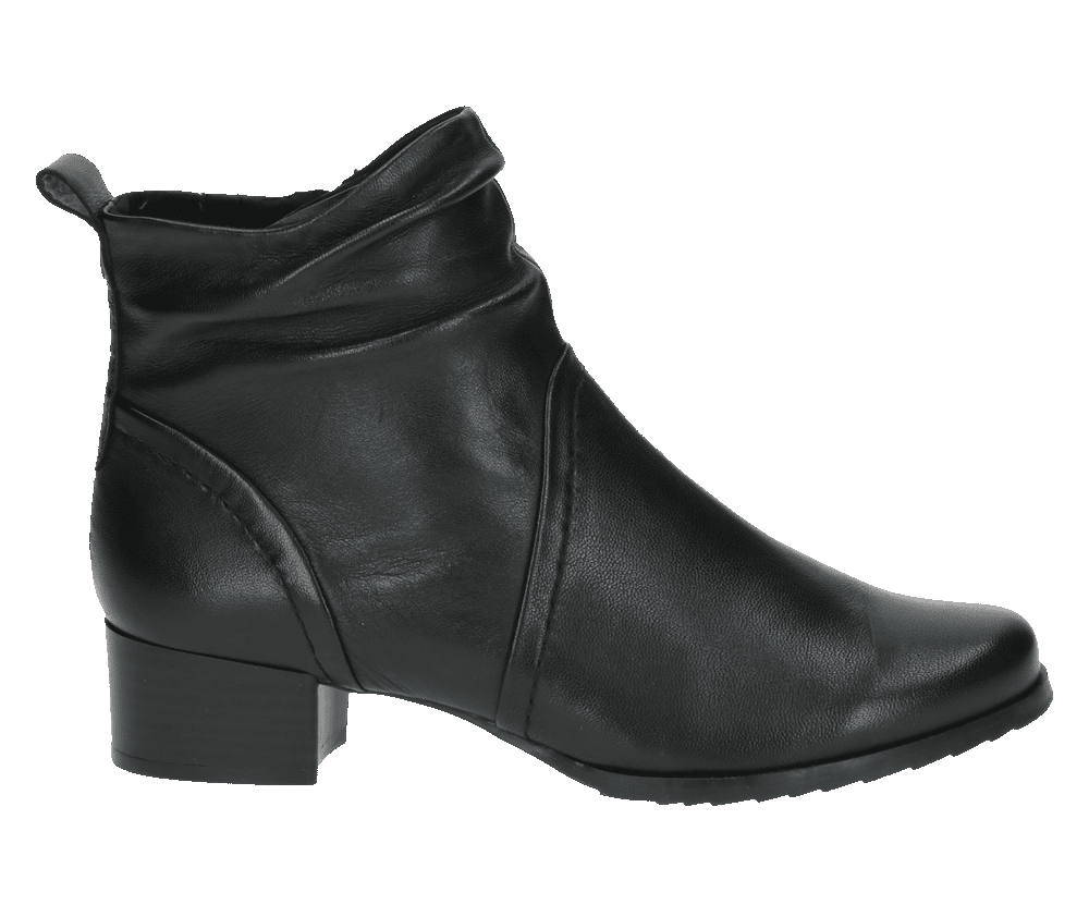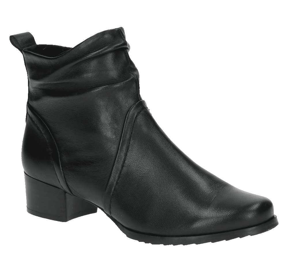 Elegantní a nadčasové kotníkové boty z jemné černé kůže se stanou univerzálním kouskem vašeho šatníku. Jednoduchý, čistý design je doplněn jemným řasením v oblasti kotníku, které botám dodává ženský šmrnc a zároveň decentní originalitu. Vrchní materiál je hladká kůže. Vnitřní materiál je textil. Stélka je vymekčená, s technologií airmotion a vyjímatelná. Obuv je v šíři G. Podešev je syntetická, flexibilní. Výška podpatku je 4 cm. Barva u tohoto vzoru je černá.