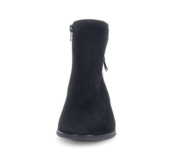 Elegantní kotníková obuv v kombinaci lakované a broušené kůže na komfortním blokovém podpatku jsou perfektním obutím pro podzimní a zimní období. Vrchní materiál obuvi je lakovaná a broušená kůže. Vnitřní materiál je textil. Stélka je textilní, vyměkčená. Obuv je v šíři F1/2. Podešev je syntetická, flexibilní. Výška podpatku je 5,5 cm. Barva u tohoto vzoru je černá.