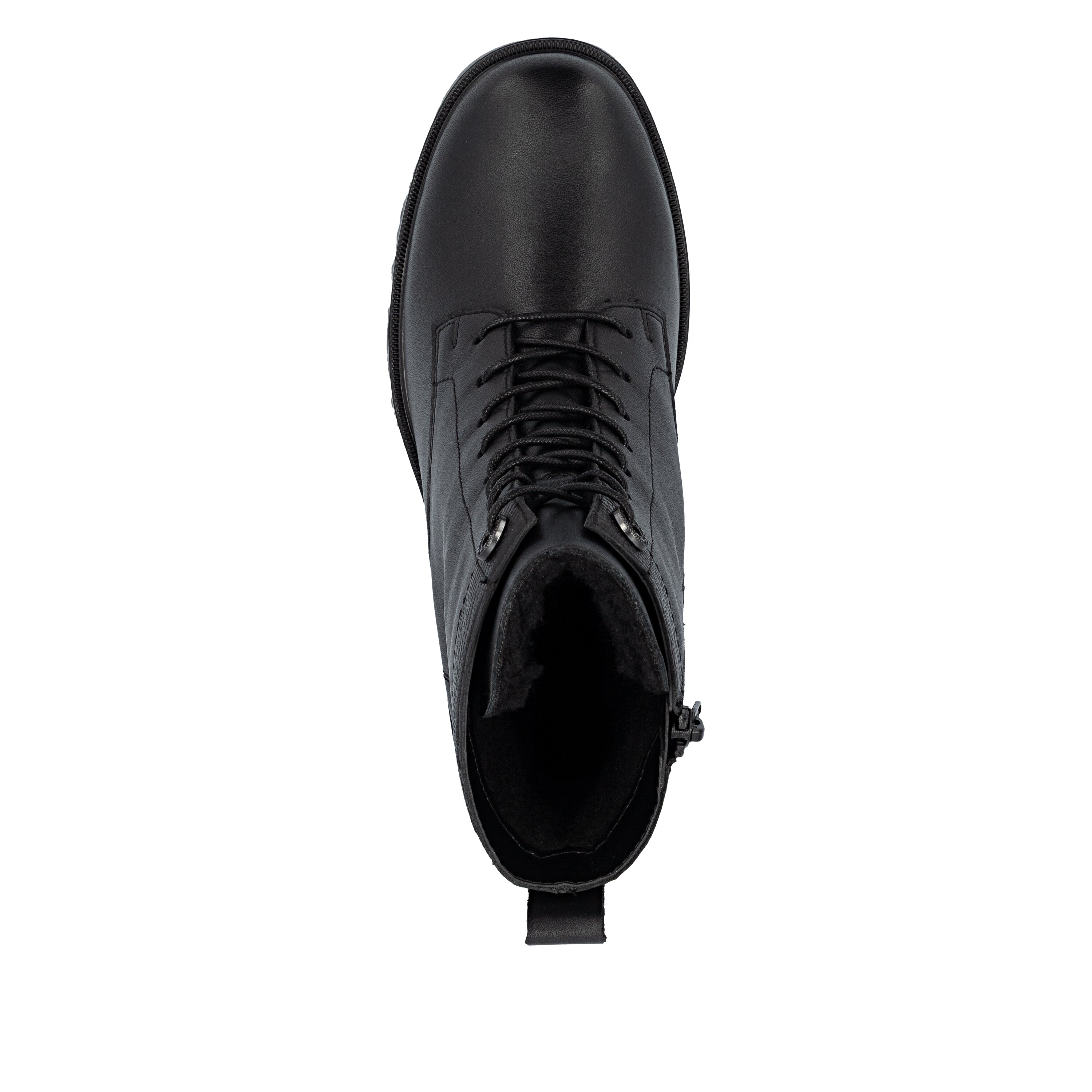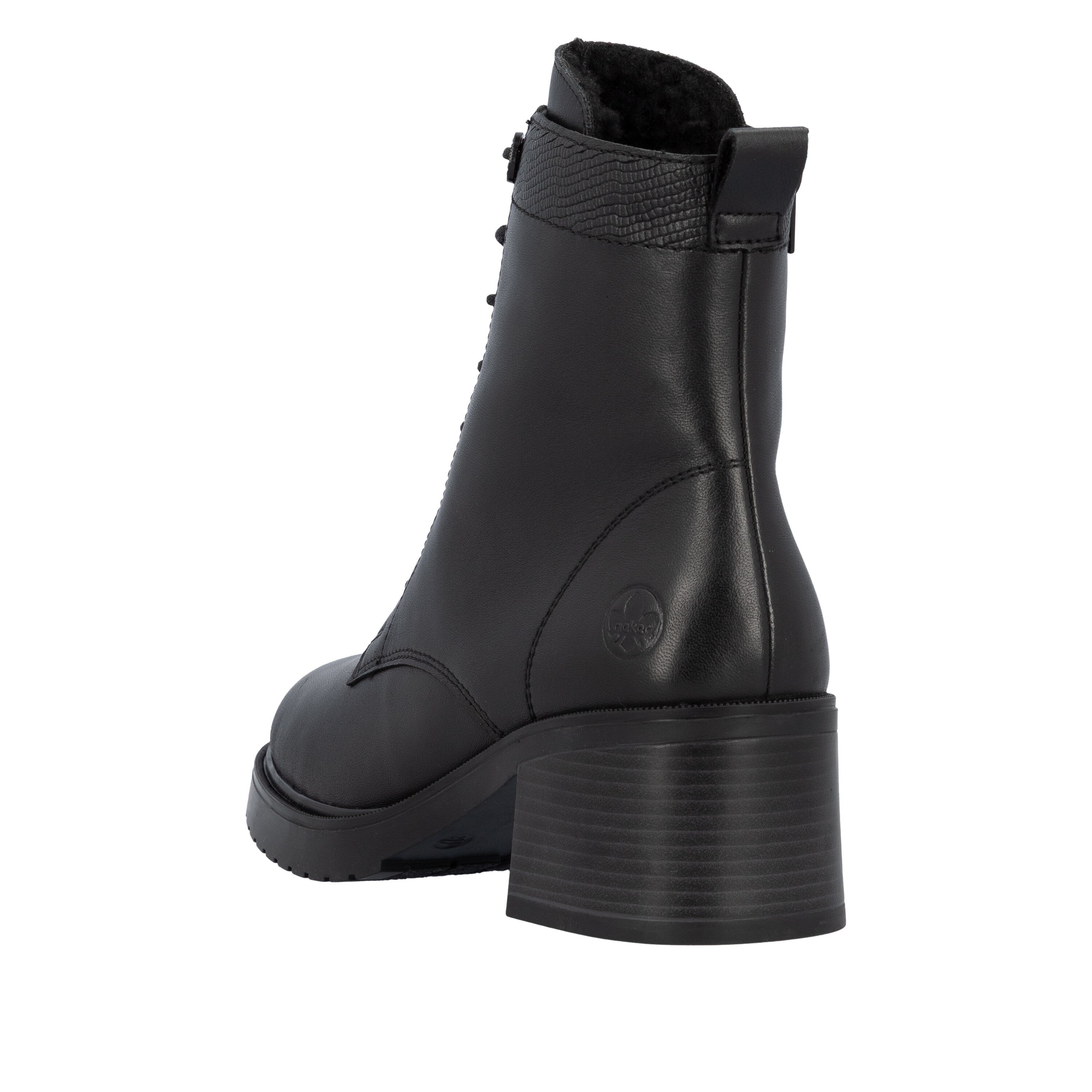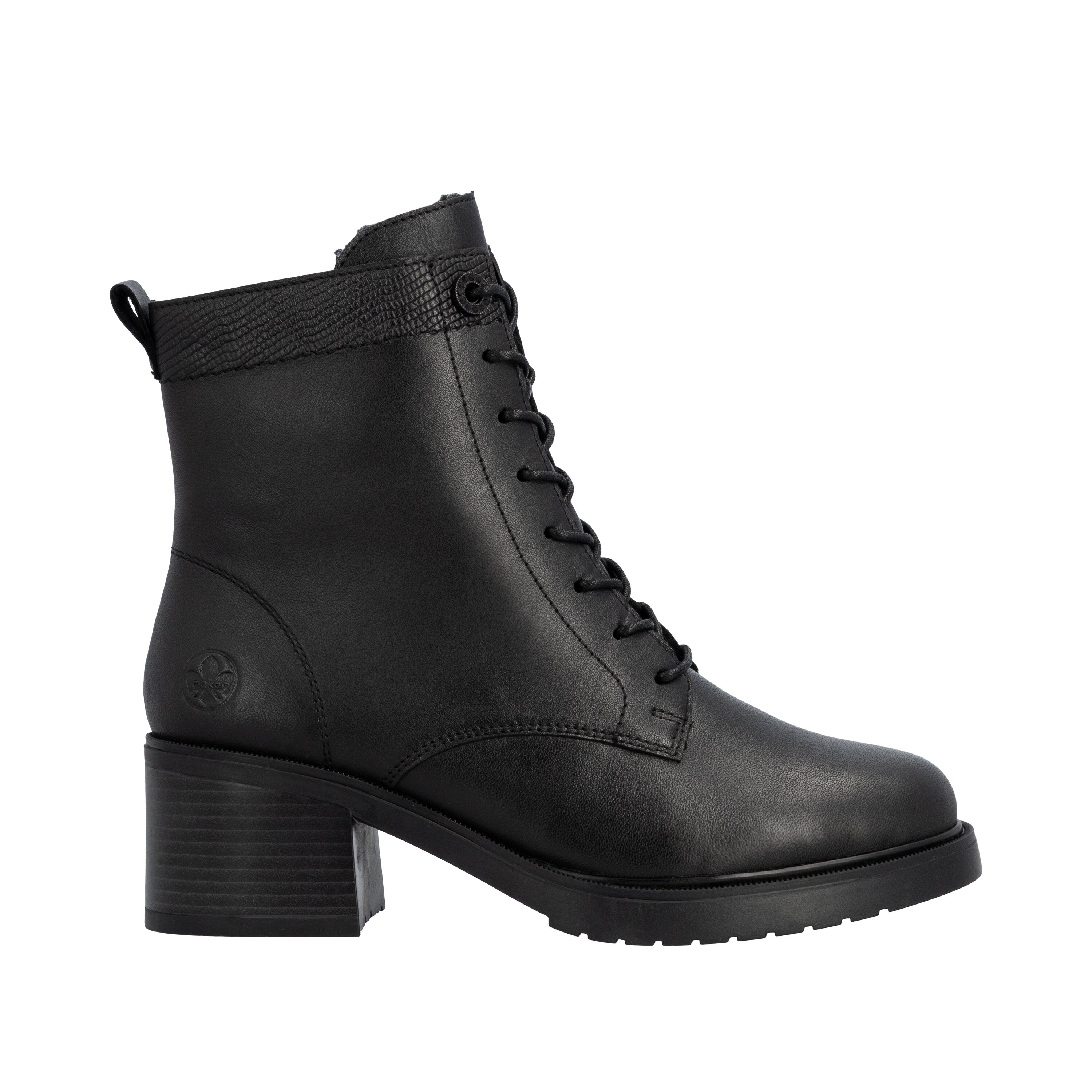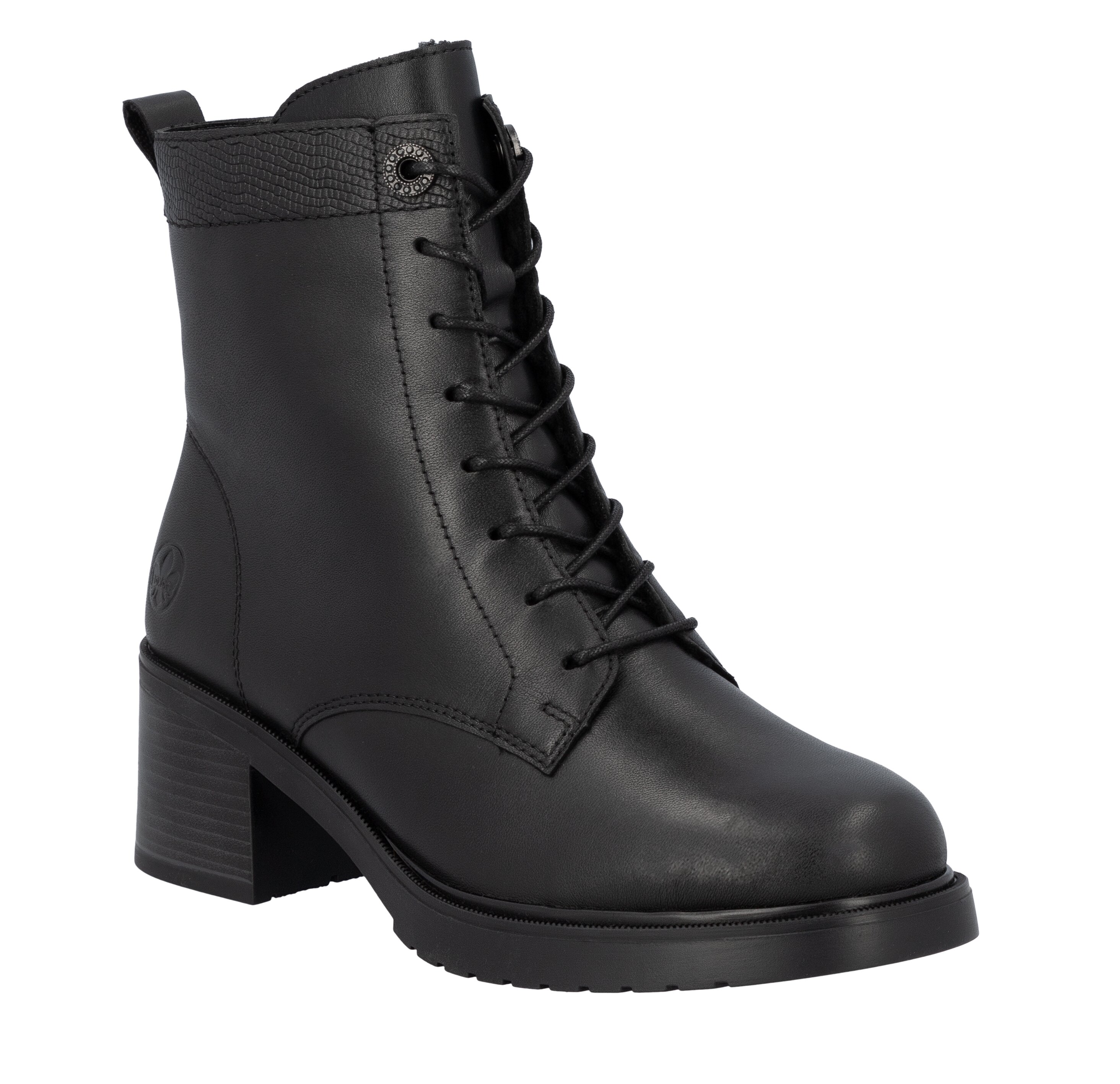 Kožená kotníková obuv v nadčasovém zpracování se zipem a šněrováním pro komfortní nazouvání na středním podpatku.