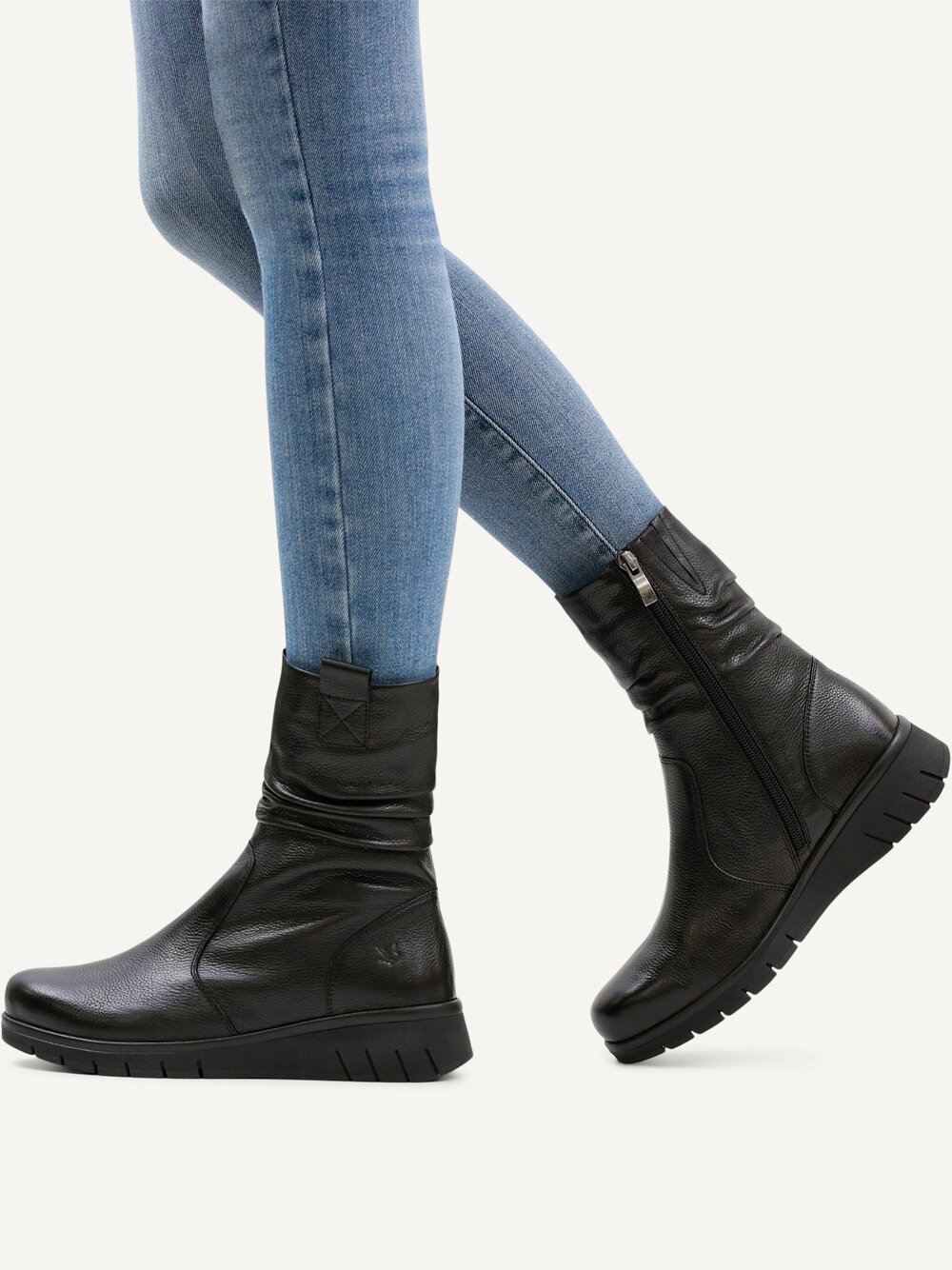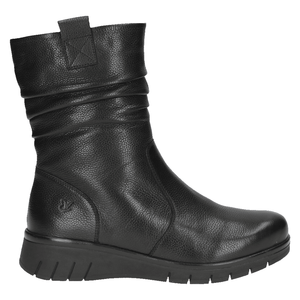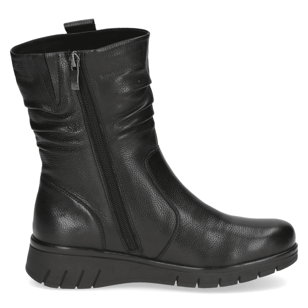 Komfortní zimní kotníkové boty spojují styl, bezpečí a pohodlí. Funkční Blue Grip technologie zajišťuje vyšší odolnost proti uklouznutí na kluzkém povrchu, takže se budete cítit jistě i v zimních podmínkách. Vrchní materiál je hladká kůže. Vnitřní materiál je kůže v kombinaci s textilem. Stélka je vyměkčená, vyjímatelná s technologií Airmotion. Obuv je v šiři G. Podešev je syntetická, flexibilní s technologií Blue Grip. Barva u tohoto vzoru je černá.