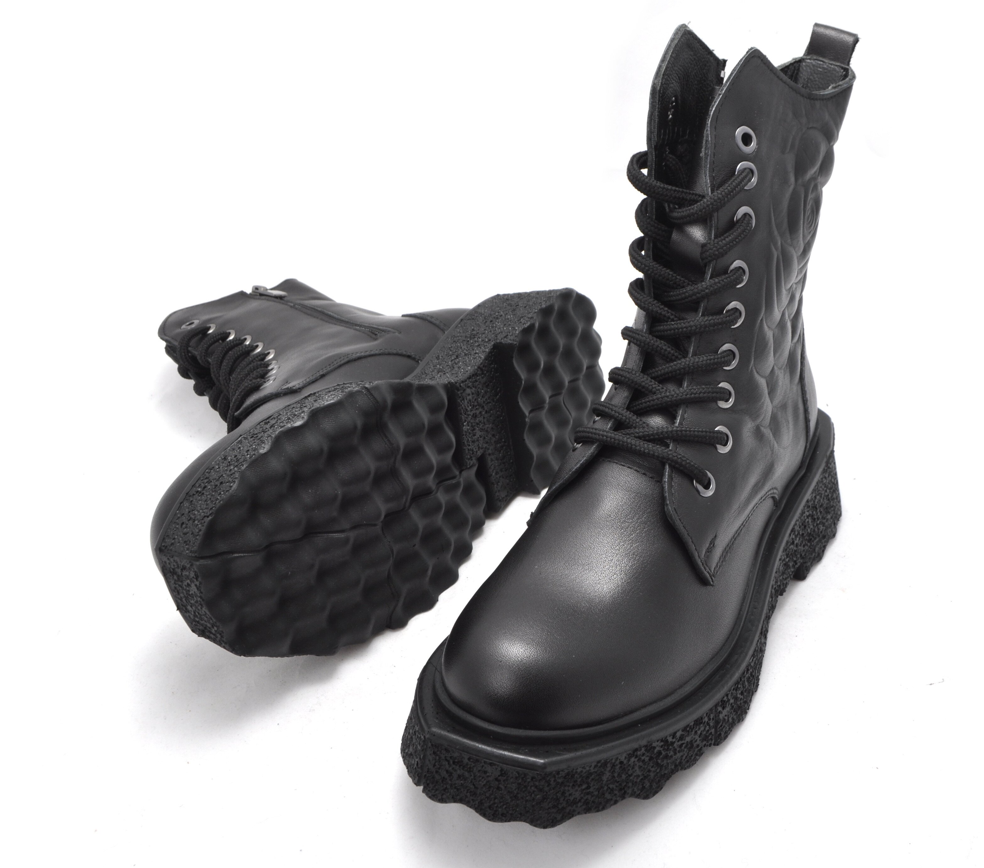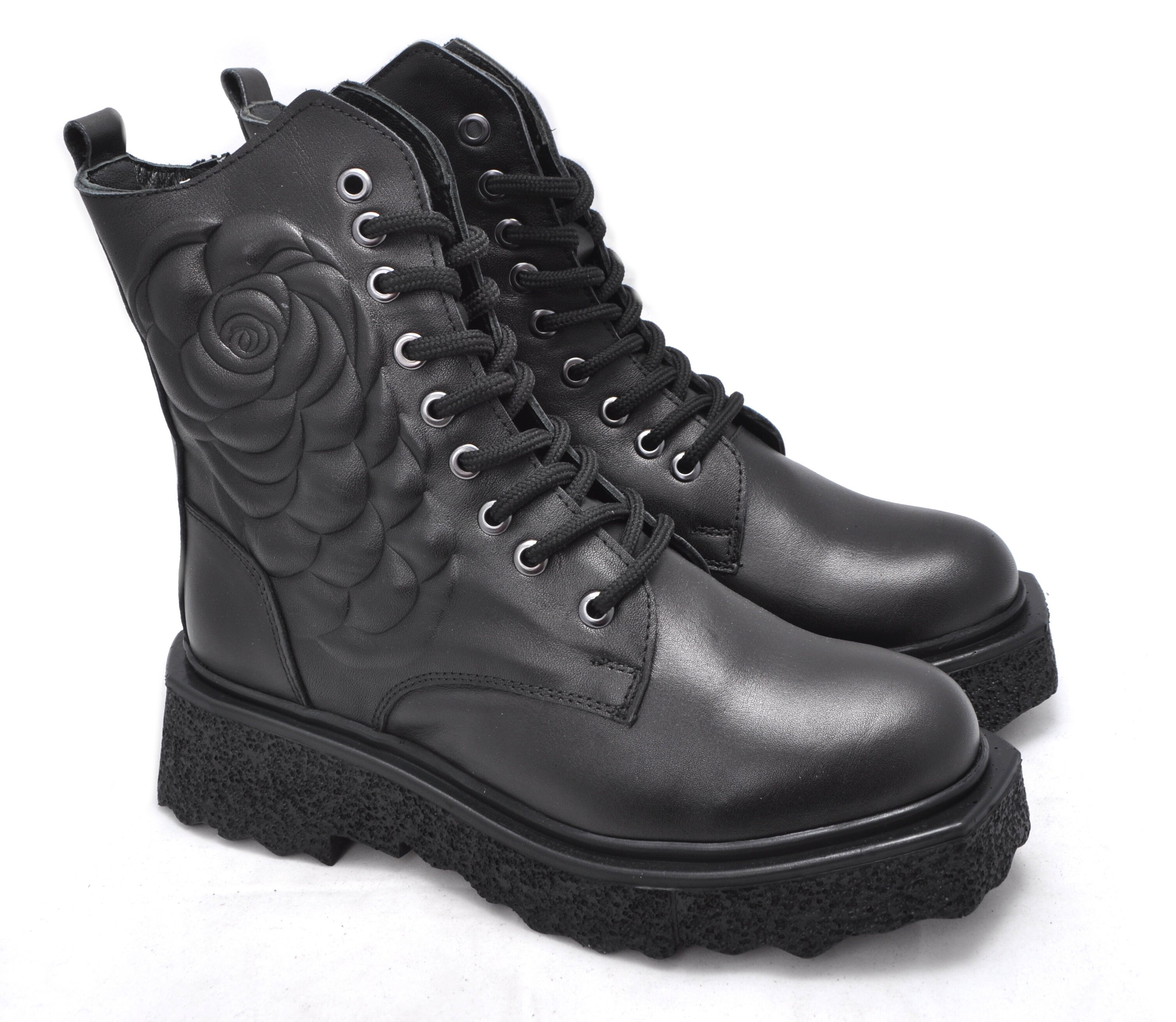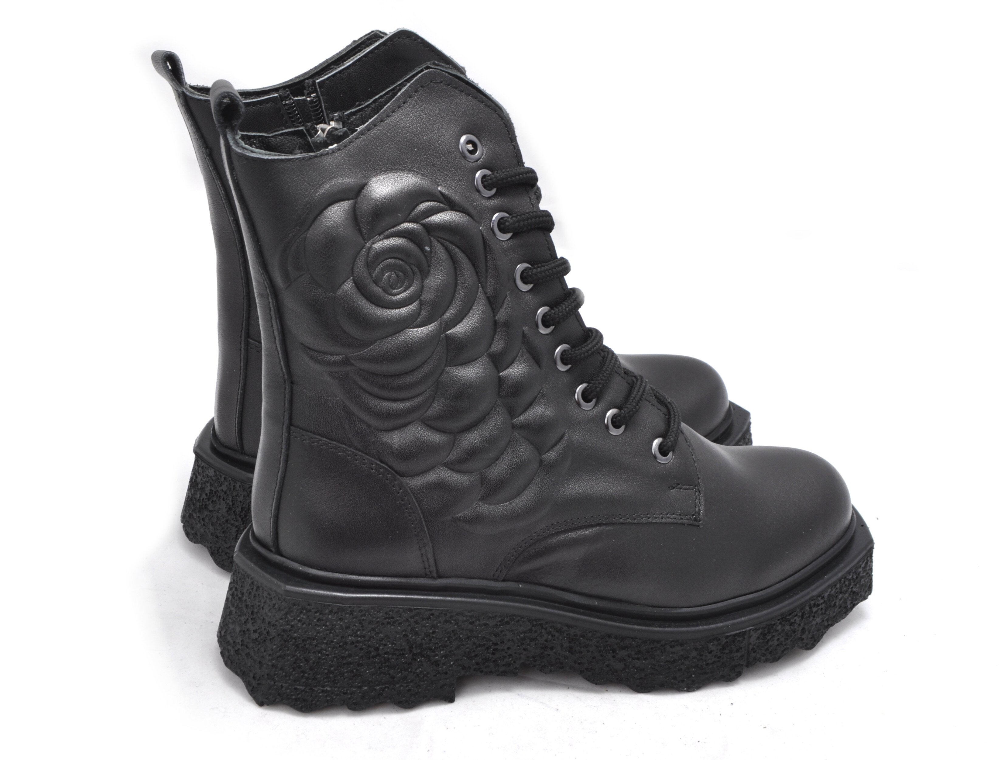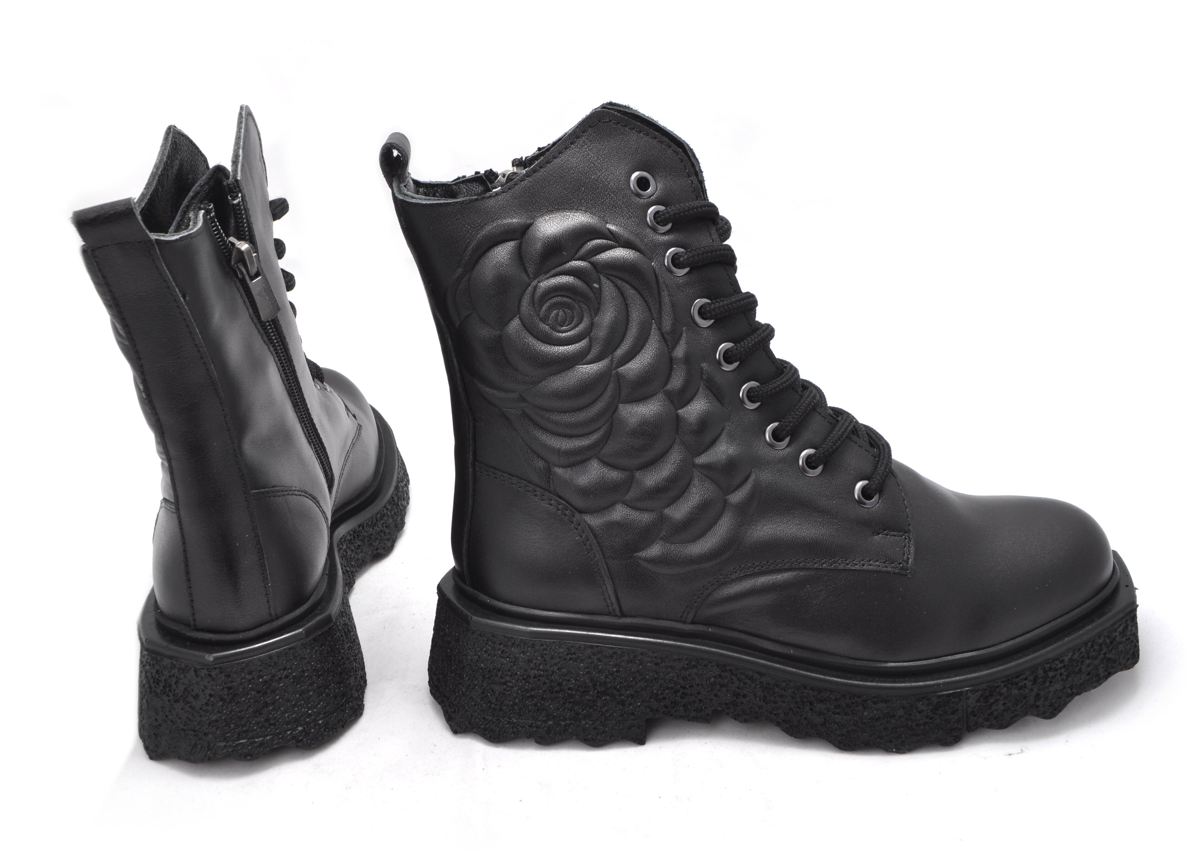 Módní a netradičně zpracovaná kotníková obuv s reliéfem květiny a netradičně tvarovanou špicí podešve zaujme na prnví pohled.