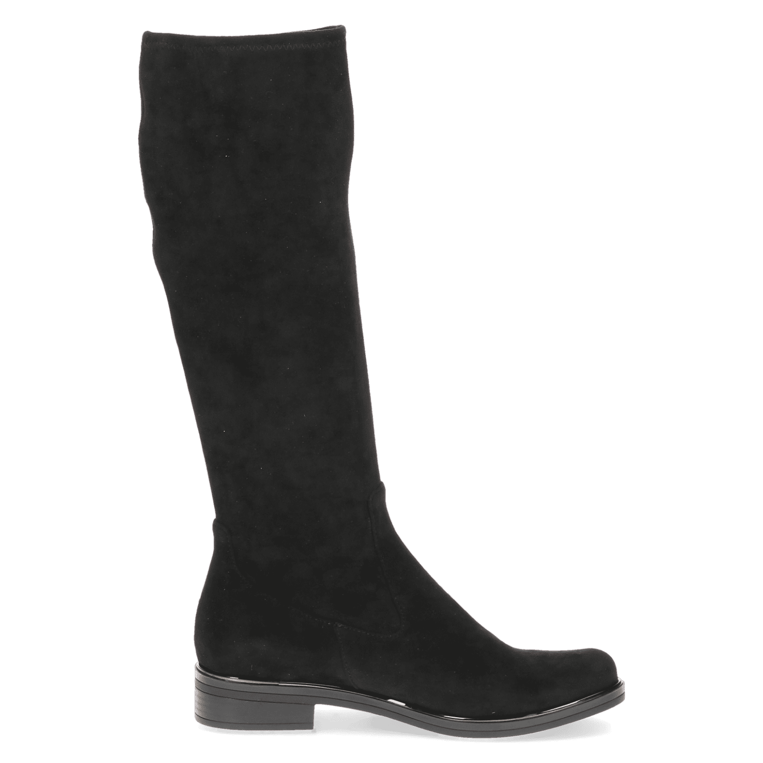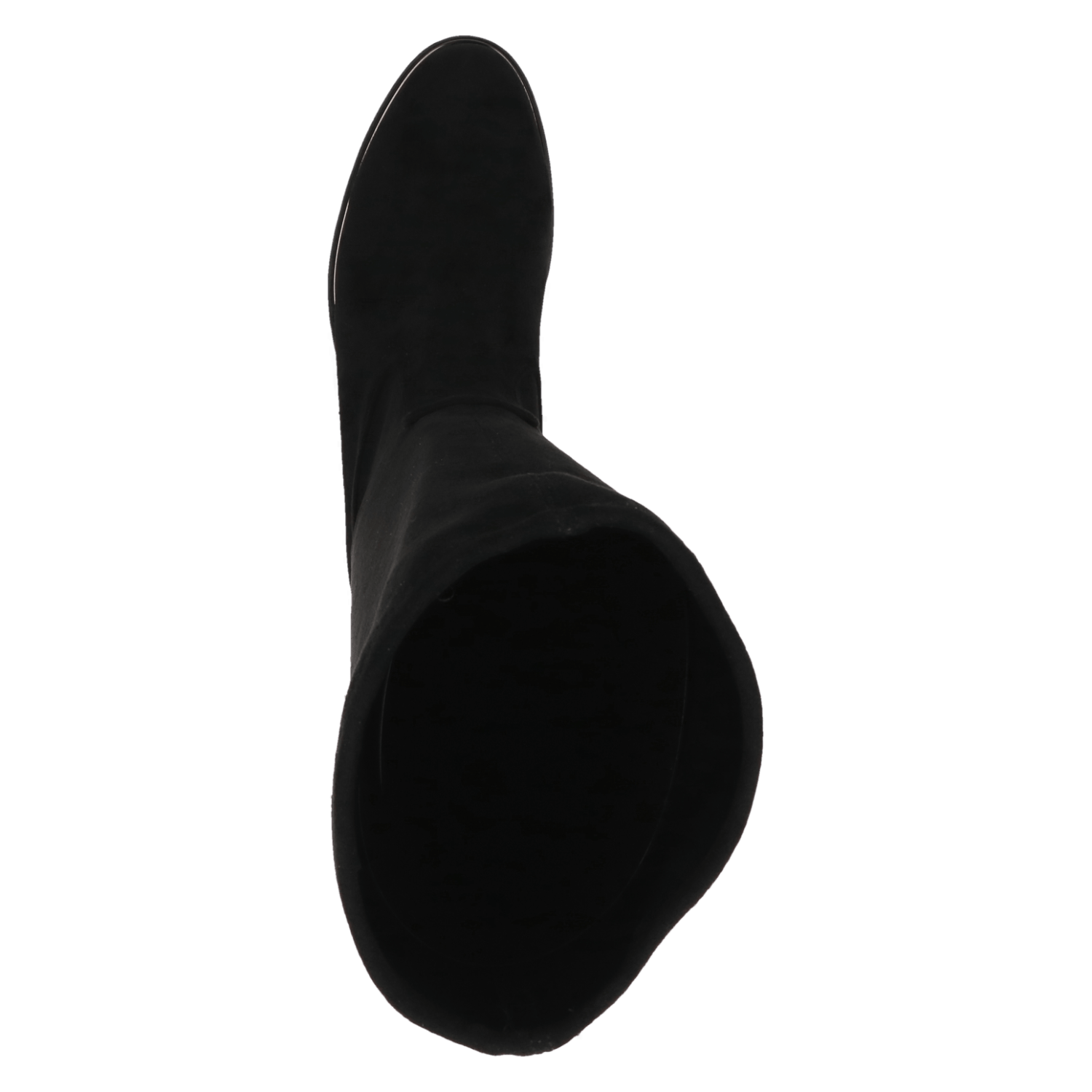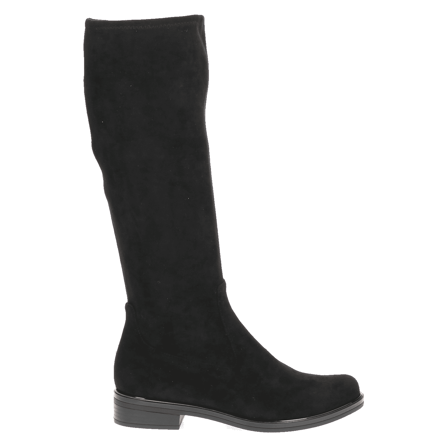 Univerzální nadčasové kozačky. Vrchní materiál obuvi je strečová textílie, ktera se dokonale přizpůsobí šíři Vašeho lýtka. Vnitřek kozaček je syntetika v kombinaci s textilem. Vyměkčená nášlapná stélka je textilní. Barva u tohoto vzoru je černá. Podešev je syntetická, flexibilní. Výška podpatku je cca 2 cm. Obvod lýtka je variabilní díky strečovému materiálu a výška od podešve nahoru je cca 37,5 cm.