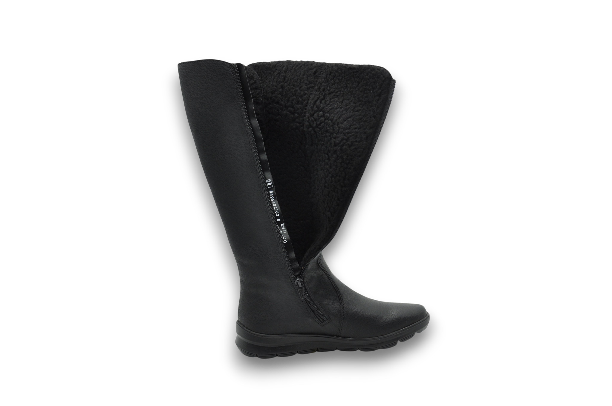Vrchní materiál je syntetika. Vnitřní materiál je textil, včetně stélky, která je textilní vyměkčená, vyjímatelná. Stélka má paměťovou pěnu. Obuv je v šíři G. Obuv je zateplená, s Tex membránou. Výška podpatku je 3,4 cm. Barva u tohoto modelu je černá. Šíře kozaček je L.