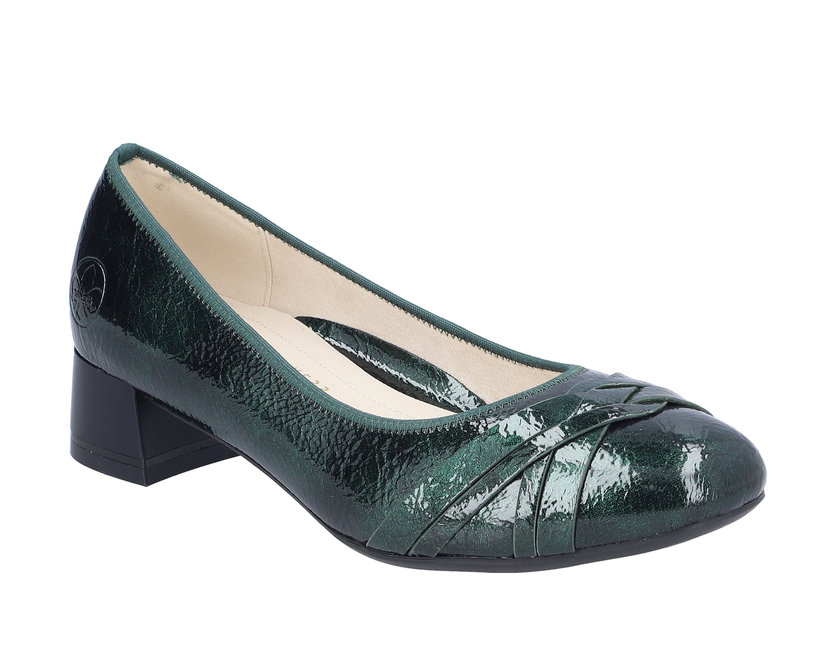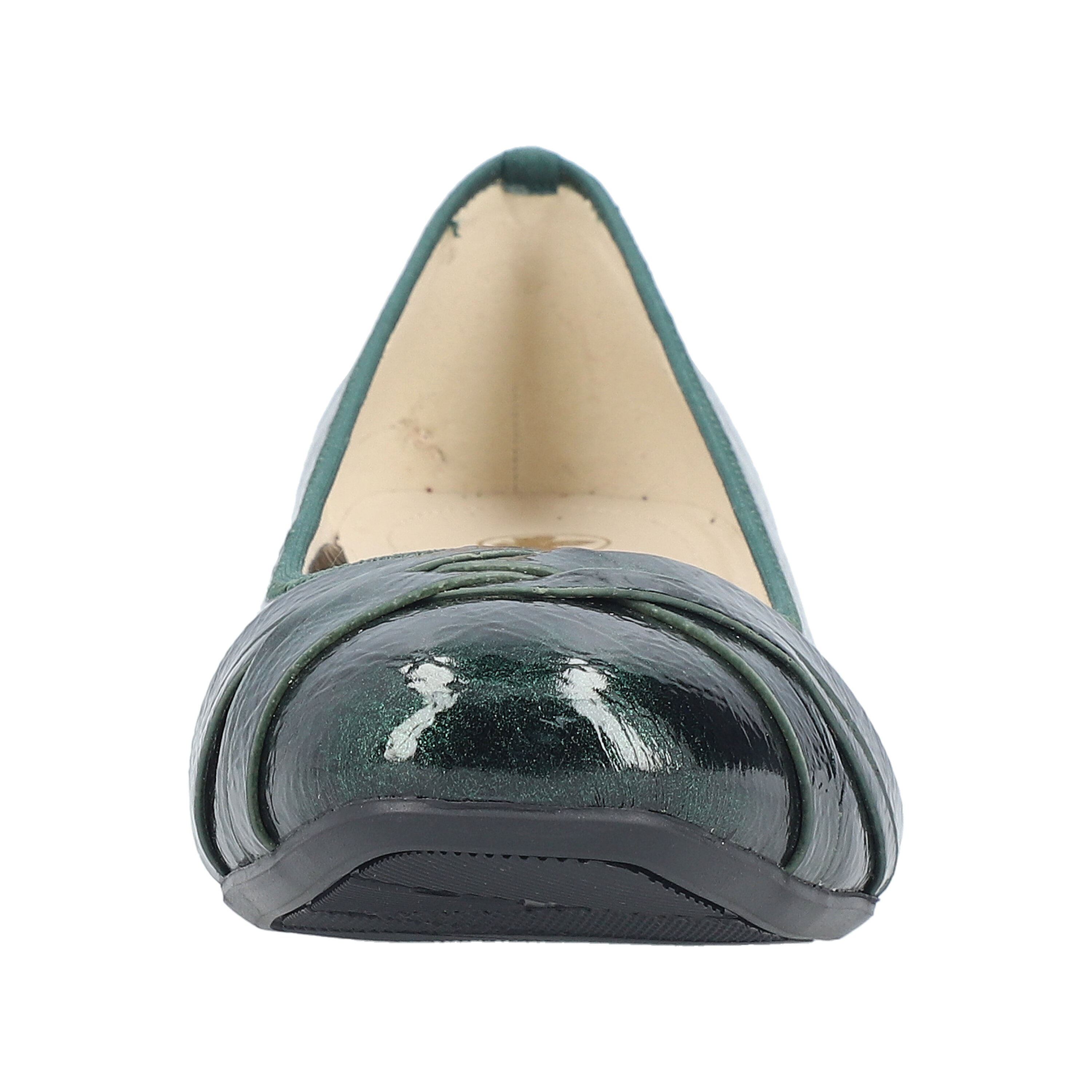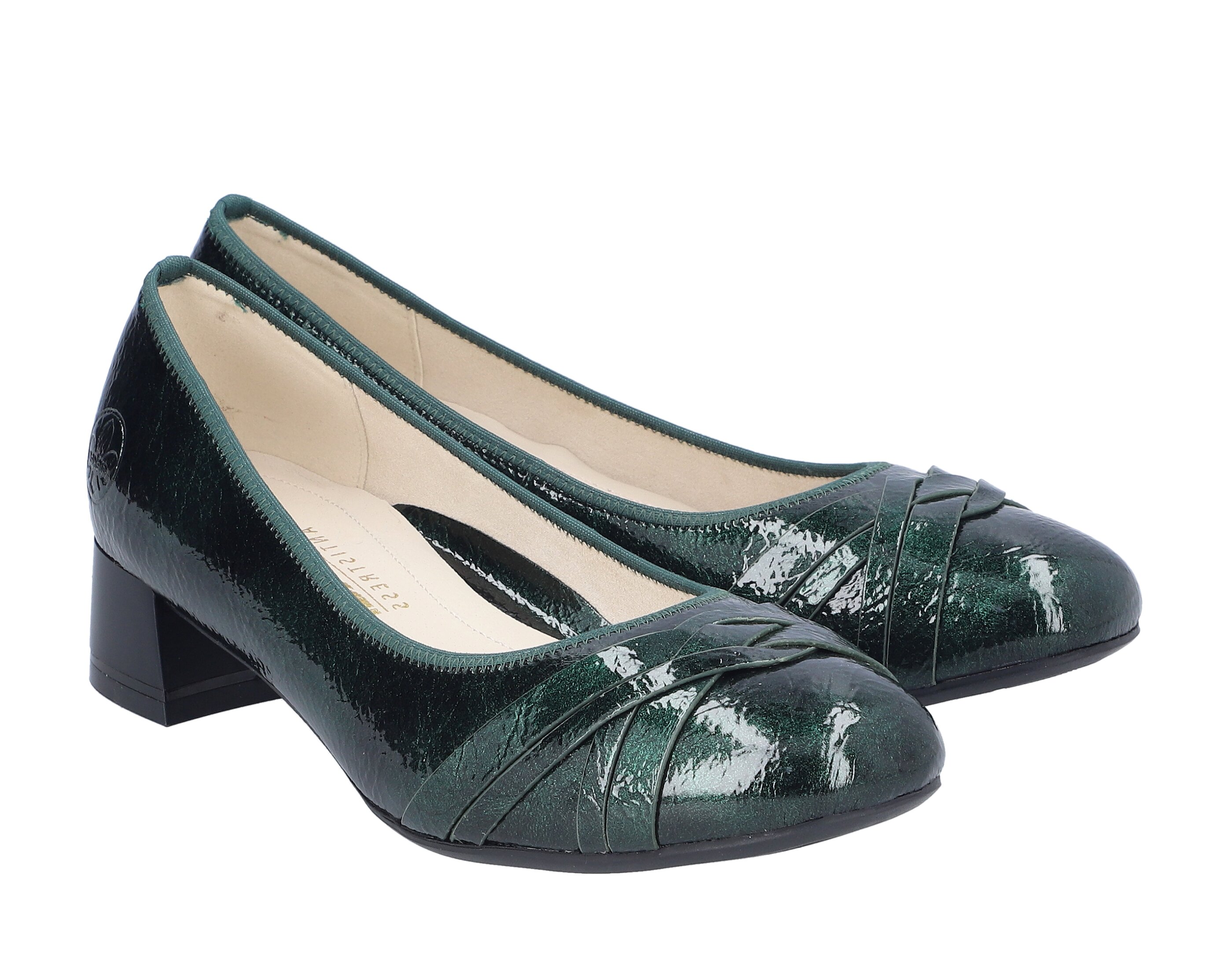 Okouzlete svým stylem v těchto lakovaných lodičkách jemným leskem v krásné výrazné zelené barvě. Propletené pásečky na špičce dodávají botám šmrnc a originální vzhled, zatímco zakulacená přední část poskytuje dostatek prostoru a zajišťuje pohodlí i při delším nošení. Stélka vyměkčená. Obuv je v šíři G. Podešev je syntetická, flexibilní. Výška podpatku je 3,5 cm. Barva u tohoto vzoru je zelená.