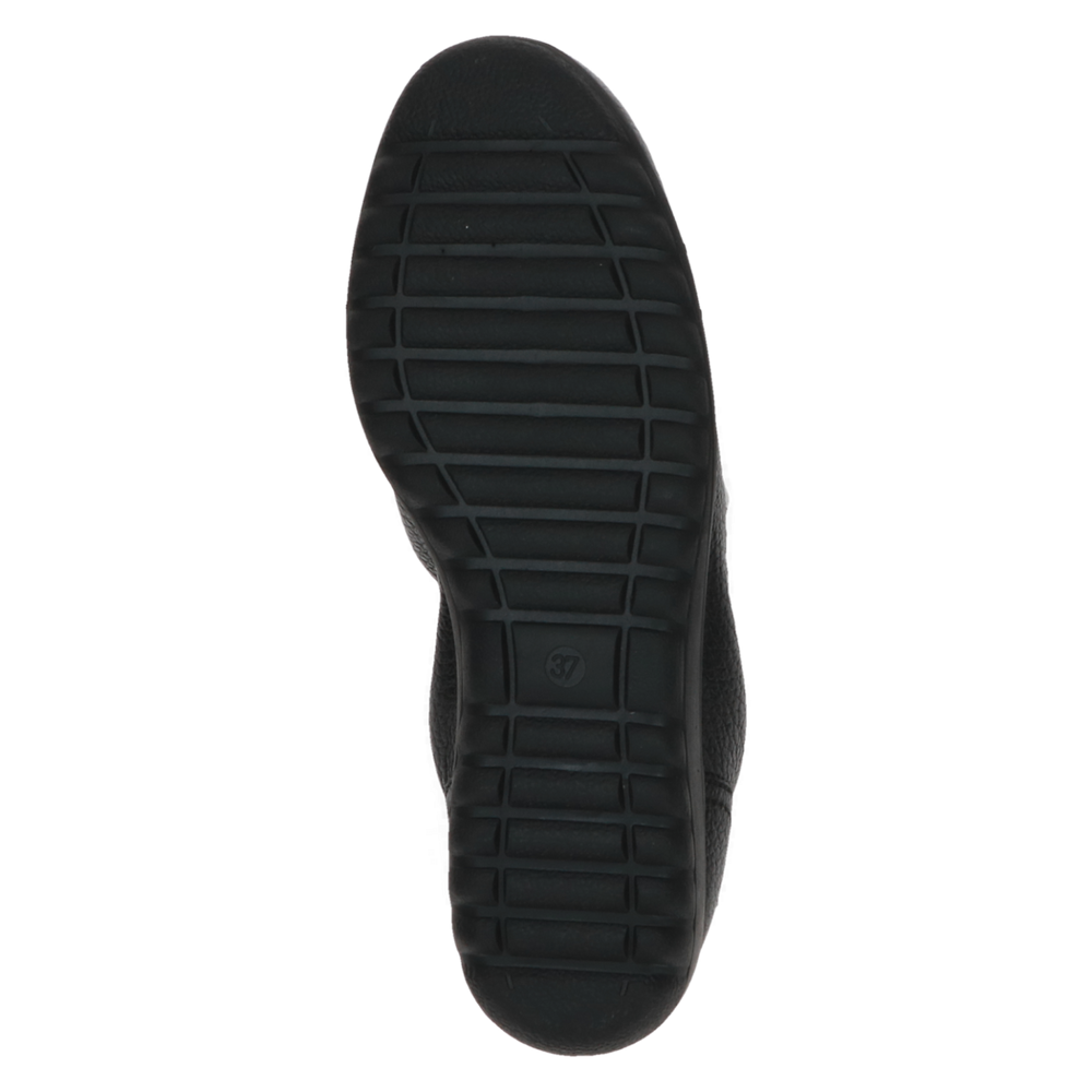 Elegantní kožené mokasíny z jelení kůže. Mokasíny jsou vybaveny airmotion stélkou, která zajistí pohodlí a komfort pro chůzi po celý den. Vrchní materiál je jelení kůže. Vnitřní materiál je syntetika a kůže. Stélka je kožená, vyměkčená a vyjímatelná. Obuv je v šíři G. Podešev je syntetická, flexibilní. Výška podešve je 3 cm. Barva tohoto vzoru je černá.