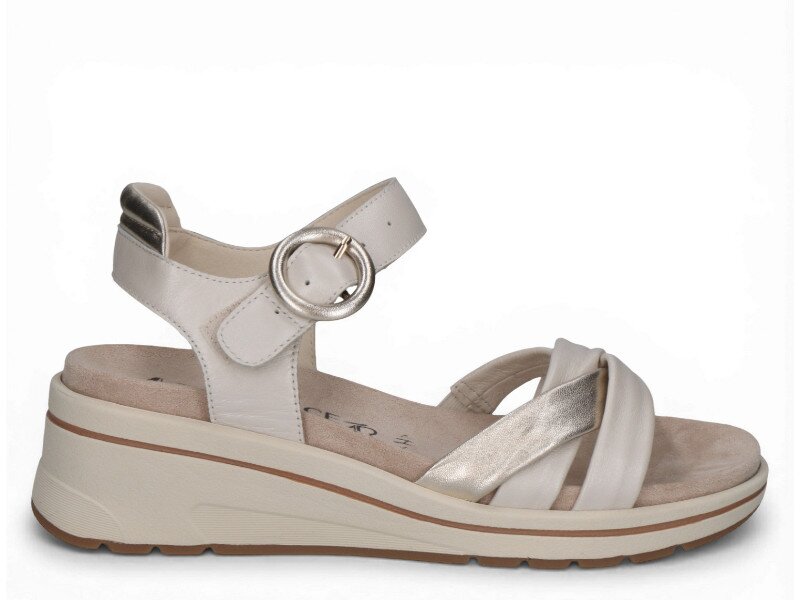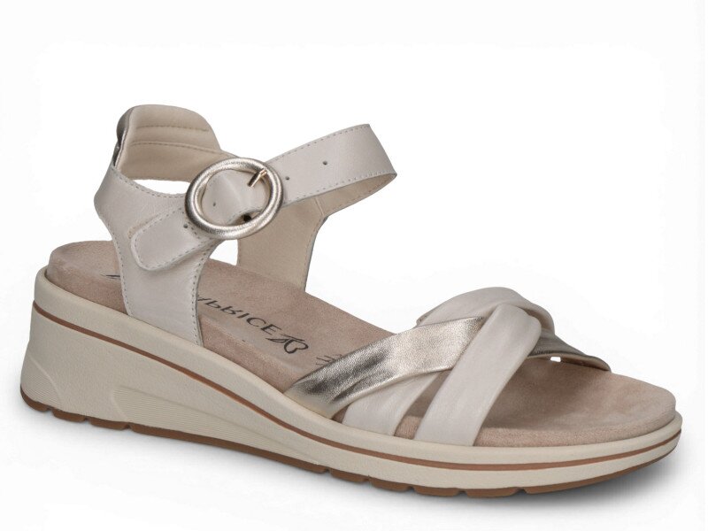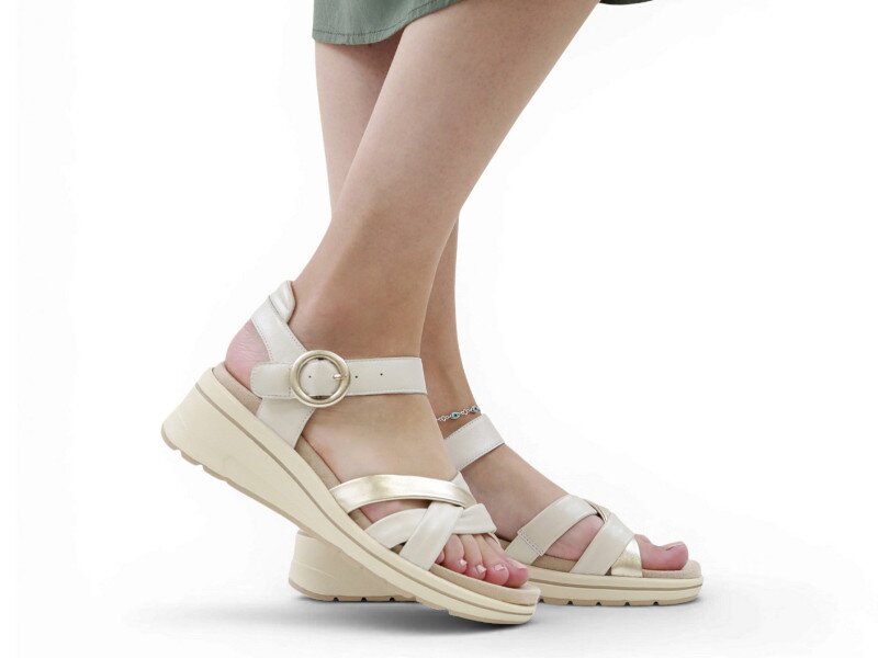 Dámské sandály na mírném klínku vás okouzlí svým provedením, stejně jako barevnou kombinací béžové se zlatou. Vhodné pro každý den stejně jako na společenské akce.