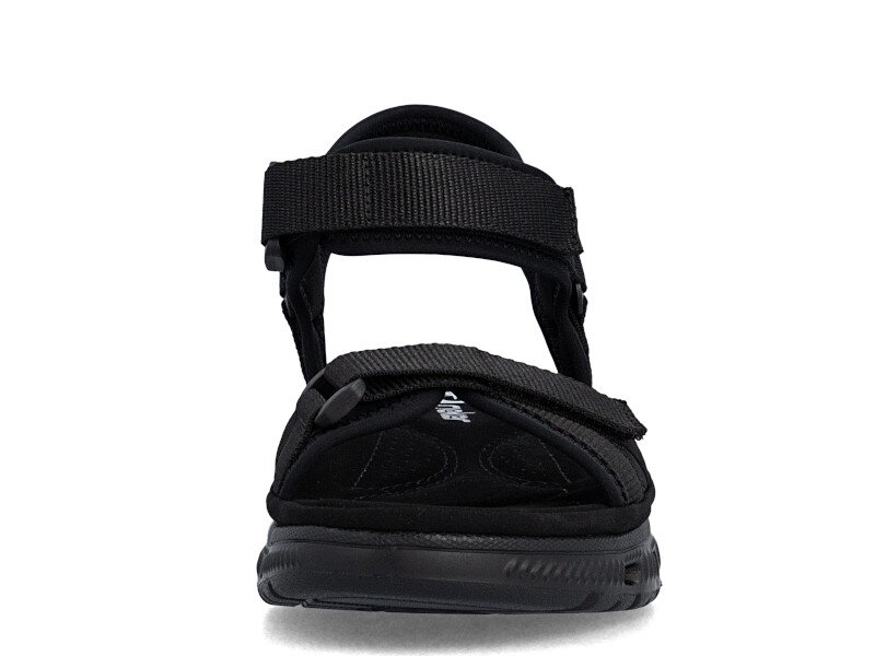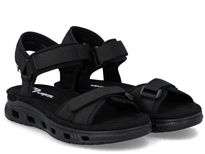 Dámské letní pantofle v černé barvě zapínané na suchý zip jsou praktickým společníkem pro horké letní dny ve městě i na dovolené.