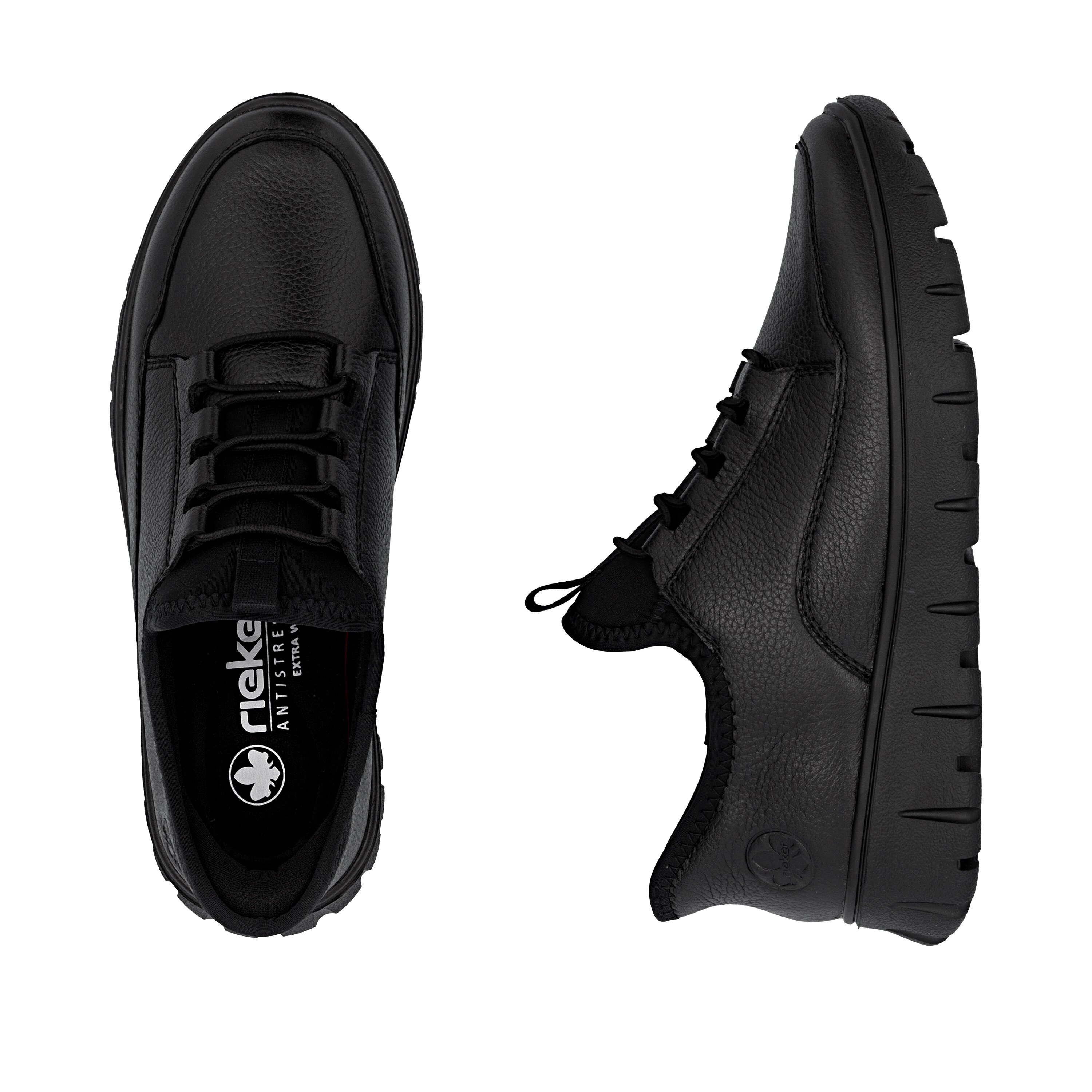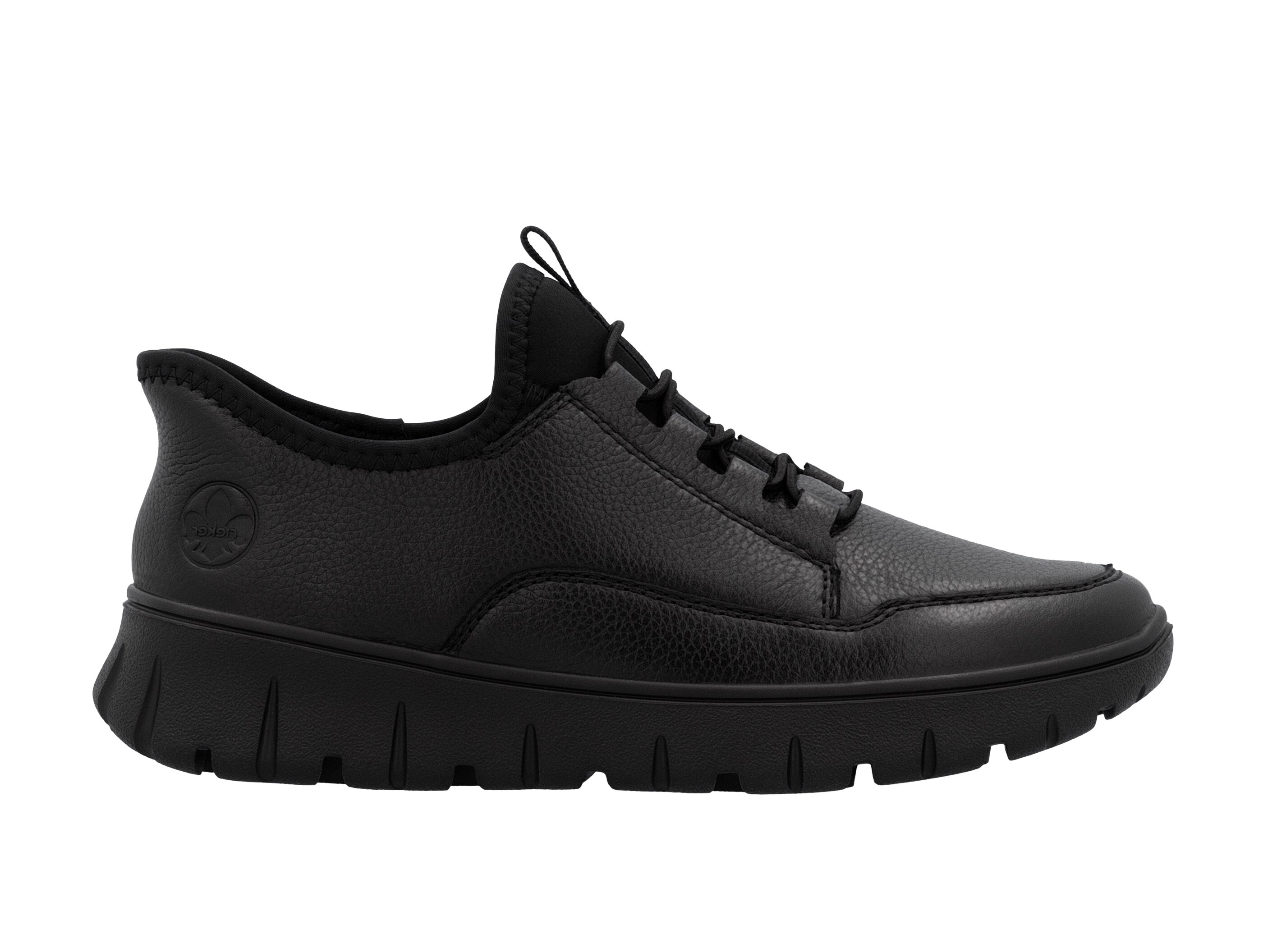 Nadčasové černé tenisky RIEKER jsou ideální volbou pro ženy, které hledají styl a pohodlí v jednom. Jednoduchý design bez zbytečných ozdob se skvěle hodí ke každodenním outfitům – od džínů po sportovní šaty. Vrchní materiál je kombinace kůže a textilu. Vnitřní materiál je textil. Stélka je vyměkčená, textilní a vyjímatelná. Obuv je v šíři G. Podešev je syntetická, flexbilní. Výška podpatku je 3,9 cm. Barva u tohoto vzoru je černá.
