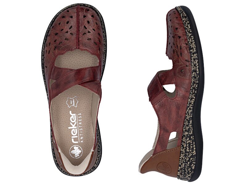 Značka Rieker je o nadstandartní pohodlnosti. Typický je pro tuto značku ANTISTRESS a vyměkčené stélky, které mají příznivý vliv na vaše chodidla i při celodenním nošení. ANTISTRESS = technologie, která zaručuje u obuvi, odlehčenost, flexibilitu, více absorbuje nárazy při došlapu, snadno se přizpůsobí každé noze a je prostornější.