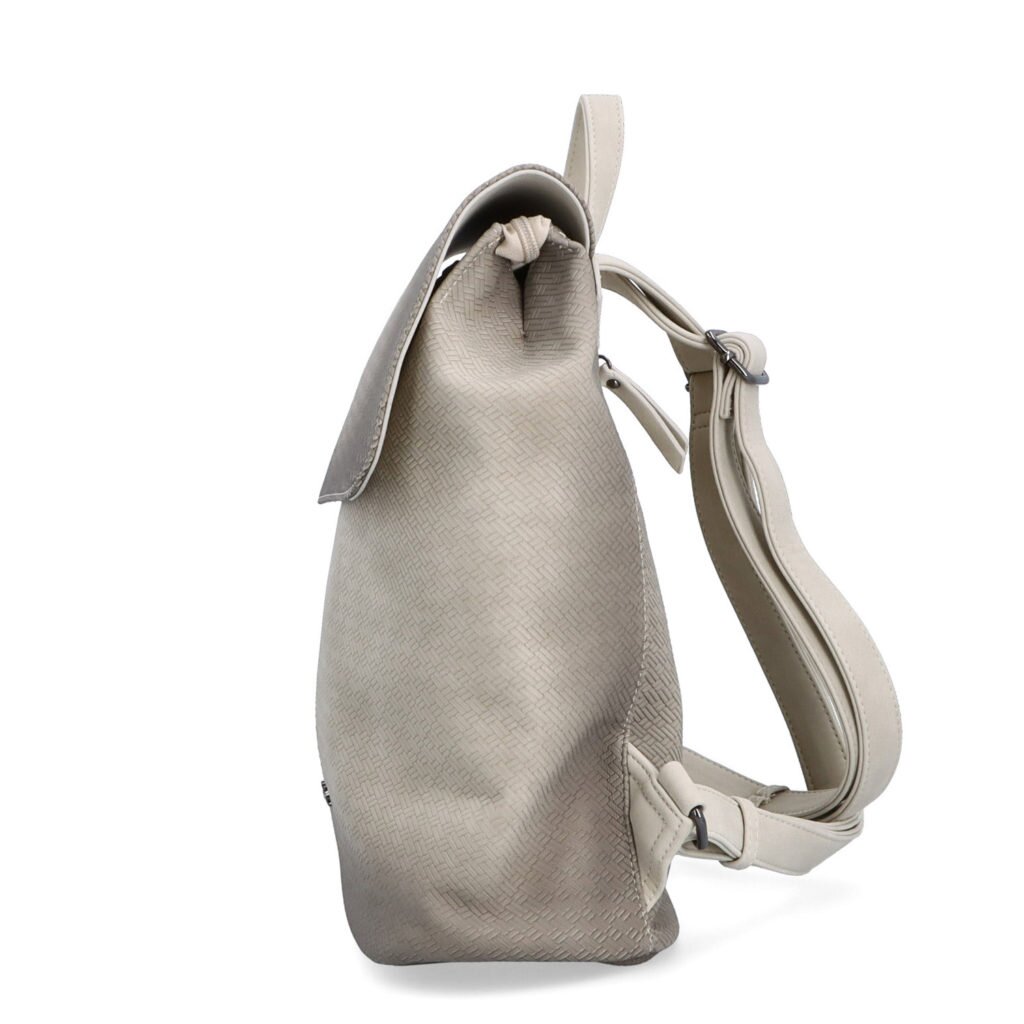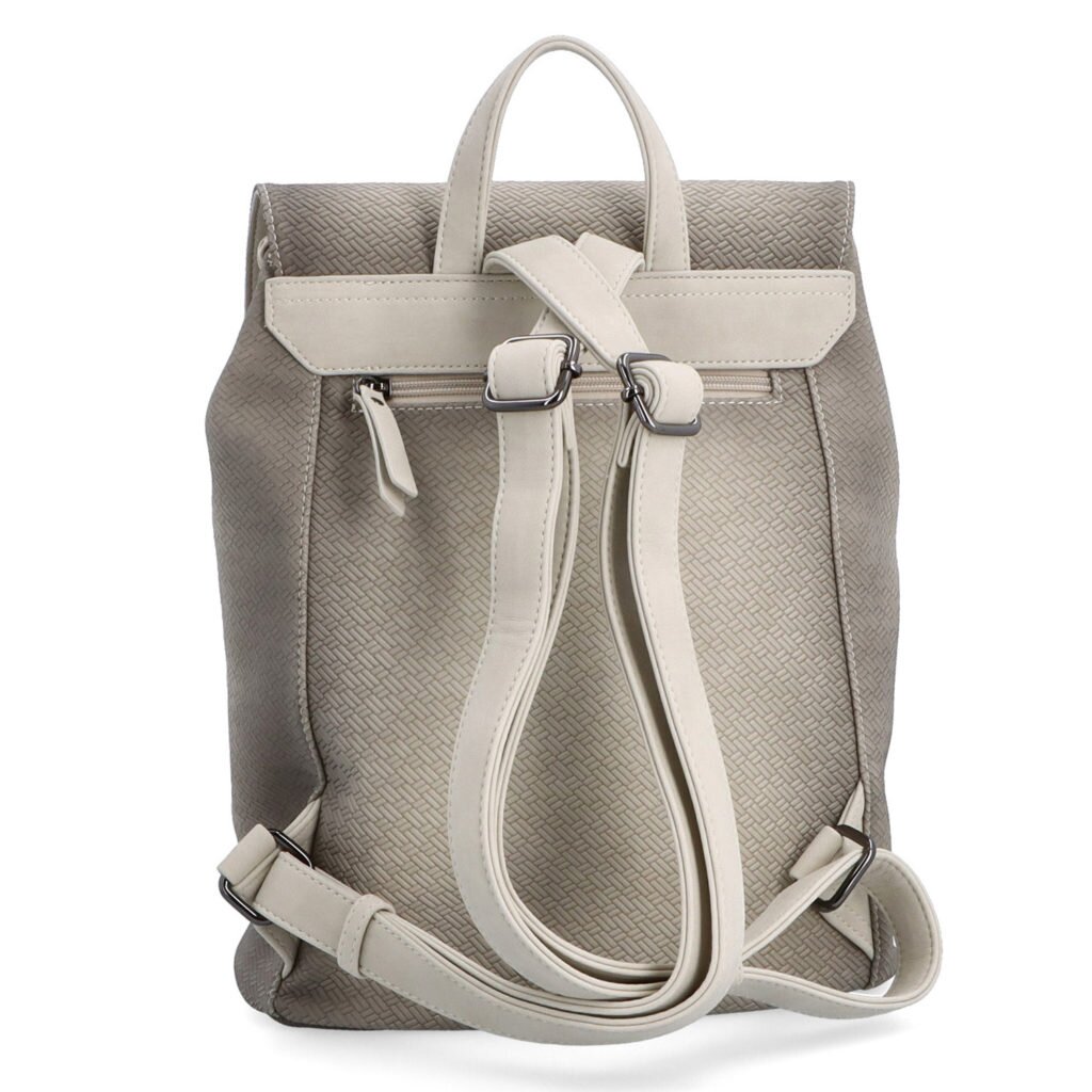 Krémový batoh s klopou na magnetický druk i zip. Batůžek je vyroben ze syntetiky a vnitřní materiál je textil. Rozměry batohu jsou 28 x 36 x 14 cm. Batoh má pod klopou hlavní kapsu na zip, uvnitř jsou 2 menší kapsy na drobnosti a jedna zipová kapsa. Další zipová kapsa je na zadní straně vně batohu (na zádech). Maximální délka ramenních popruhů je 95 cm. Objem batohu je 11 l. Formát A4 se do batohu vejde.