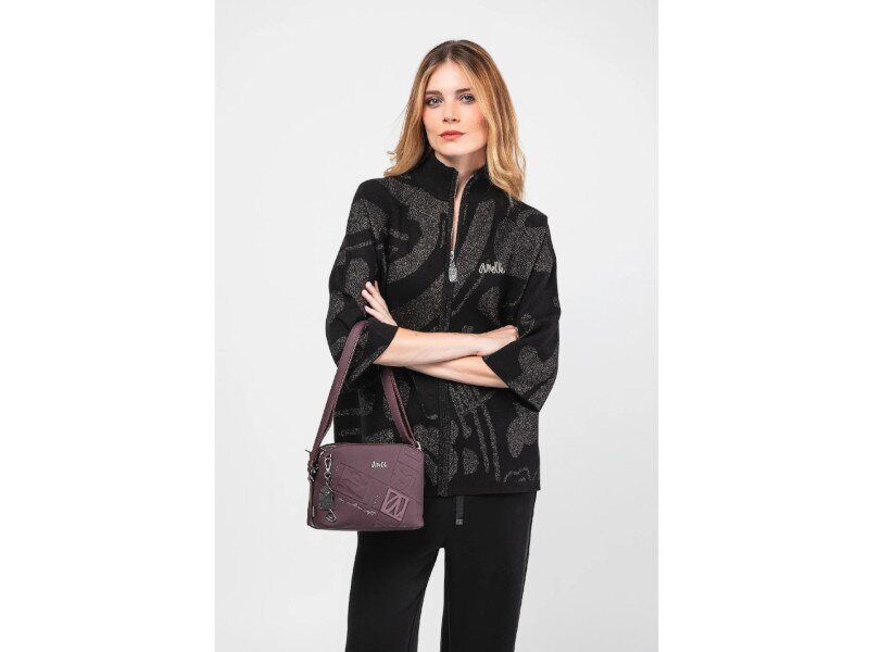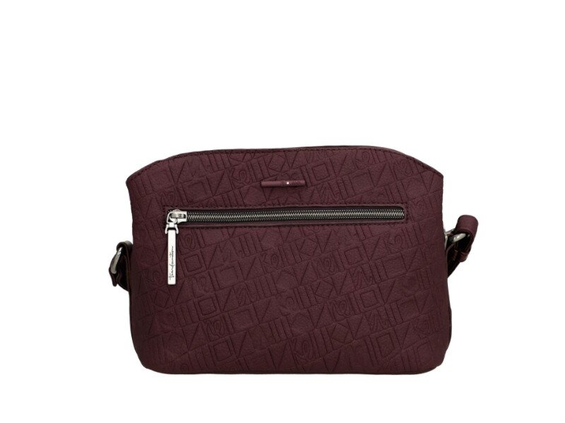Vínová kabelka má 1 samostatnou kapsu na zip, uvnitř ní je zipová kapsa na cennosti a kapsa bez zipu na drobnosti. Po stranách této hlavní kapsy na zip jsou kapsy na magnetické druky. Na zadní vnější straně kabelky je taktéž zipová kapsa. Celkový počet kapes je 7. Maximální délka nastavitelného neodepínatelného popruhu je 125 cm. Vnější materiál je syntetika a podšívka je textilní. Rozměry kabelky jsou 23 x 17 x 11 cm. Dokument A4 se do kabelky nevejde.