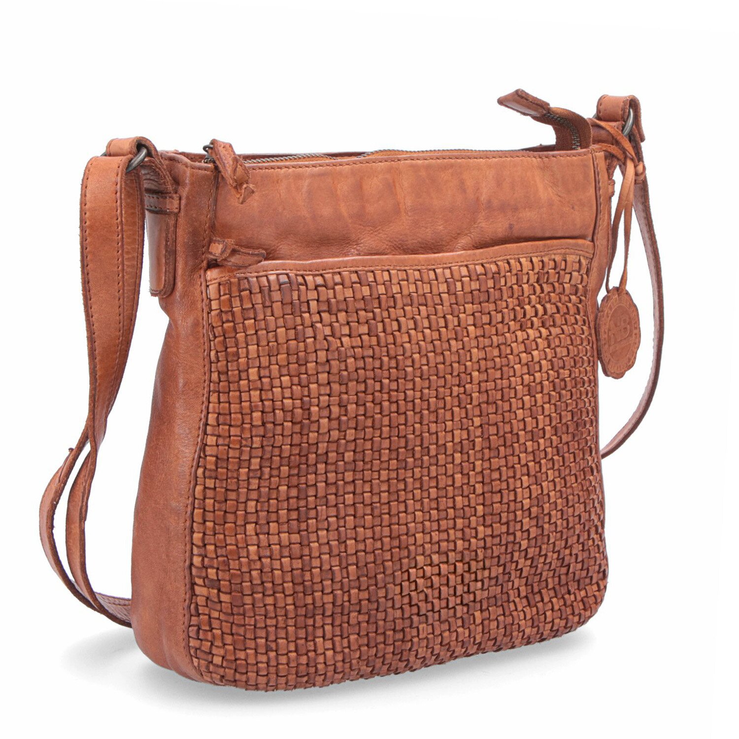 Vintage crossbody kabelka s proplétaným designem spojuje eleganci s praktičností. Díky přední i zadní kapse na zip snadno uschováte všechny své nezbytnosti.