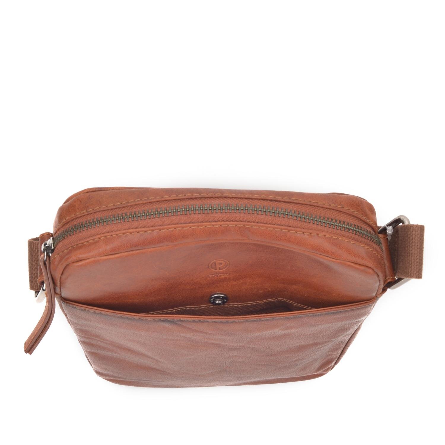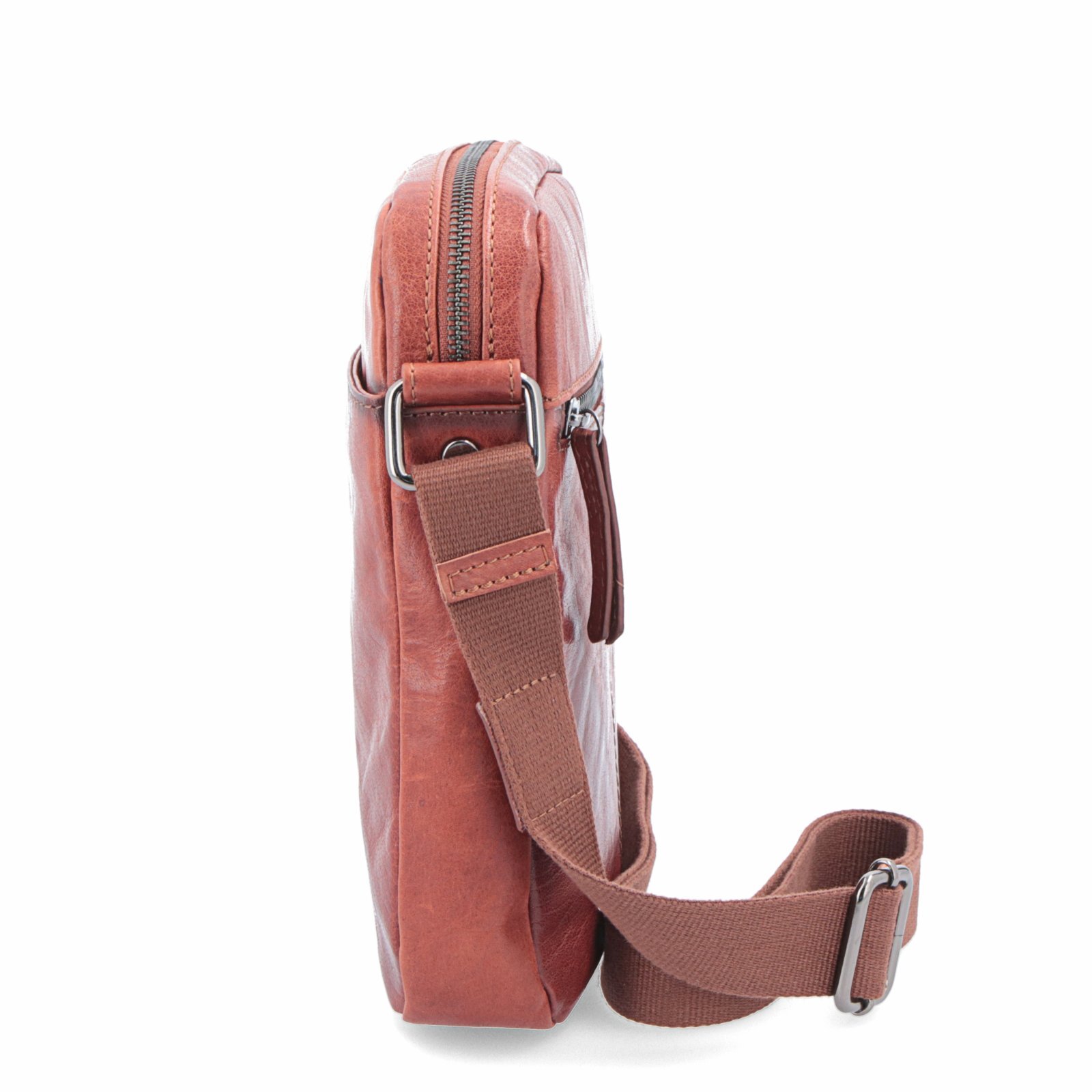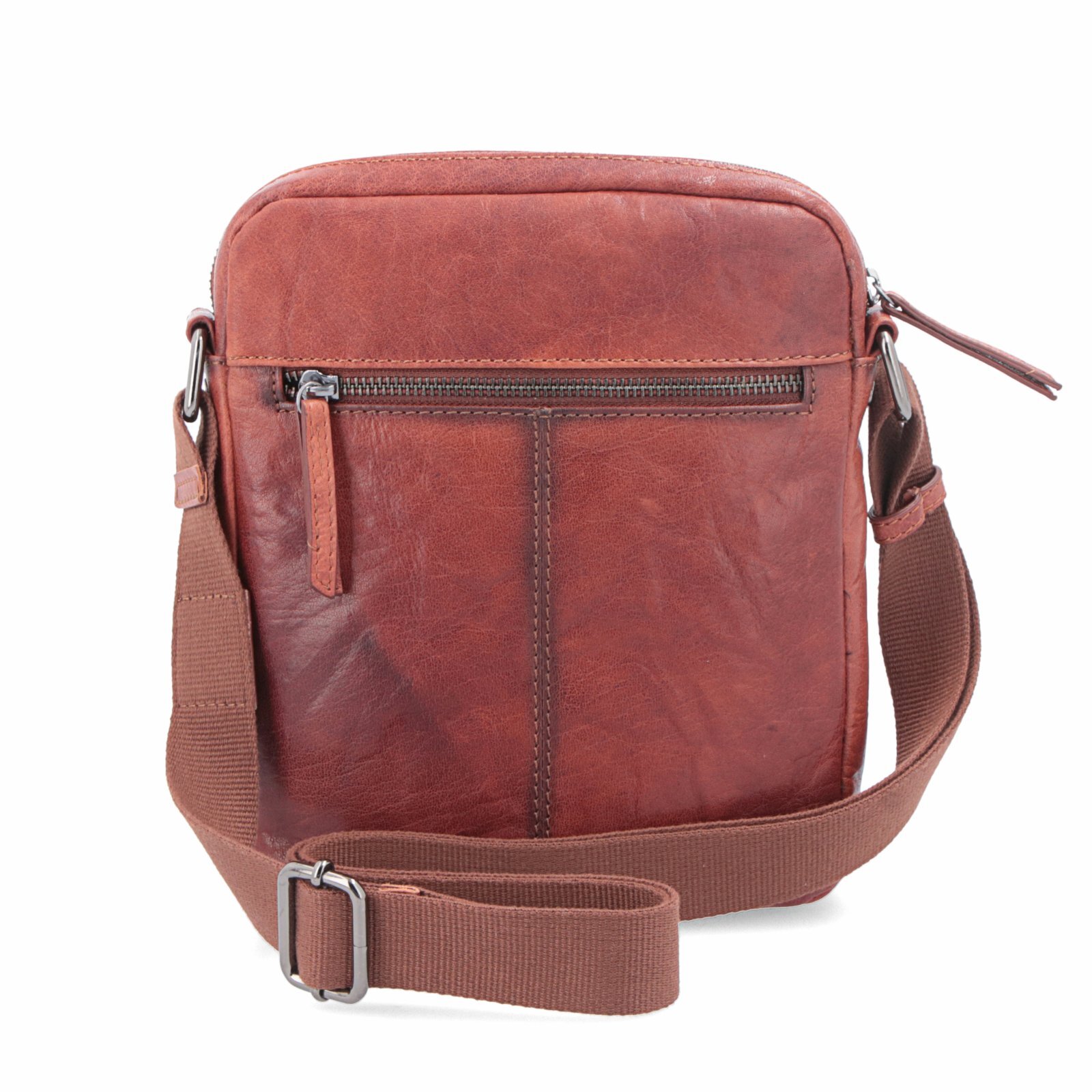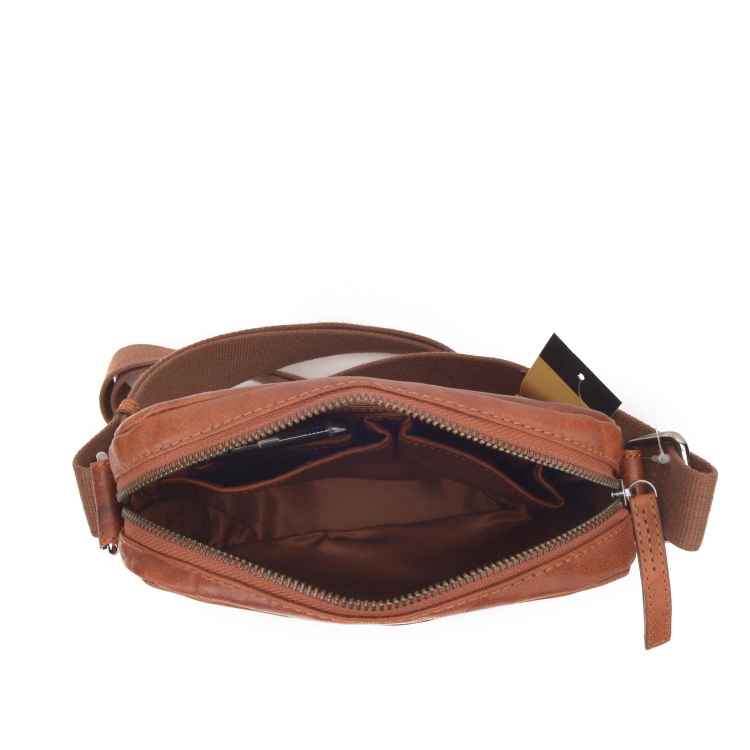 Hnědá crossbody taška. Taška má hlavní kapsu na zip, uvnitř se nacházejí 2 kapsy na uložení drobností bez zipu a jedna zipová kapsa. Na zadní straně tašky je zipová kapsa a na přední straně tašky je kapsa bez zipu. Celkový počet kapes je 6. Vnější materiál je kůže a podšívka je textilní. Maximální délka popruhu je 160 cm. Dokument velikosti A4 se do tašky nevejde. Rozměry kabelky jsou 20 x 24 x 5 cm.