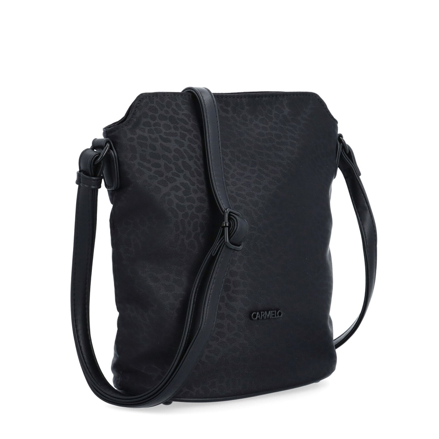 Kabelka v černé barvě má hlavní kapsu se zapínáním na zip, uvnitř je kapsa na drobnosti bez zipu, jedna zipová kapsa a jedna středová zipová kapsa. V zadní části vně kabelky je také kapsa na zip. Rozměry kabelky jsou 19 x 24 x 9 cm. Maximální délka nastavitelného popruhu je 155 cm. Materiál kabelky je syntetický materiál nylon a vnitřní materiál je textil. Dokument A4 se do kabelky nevejde.
