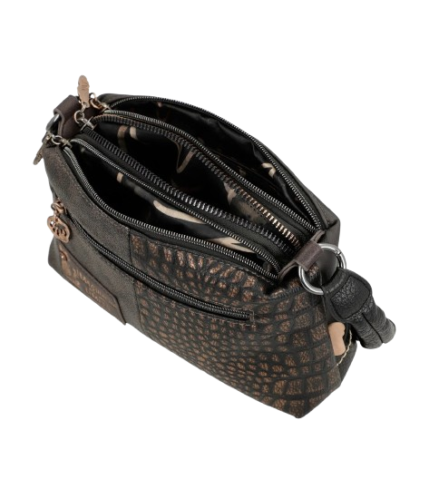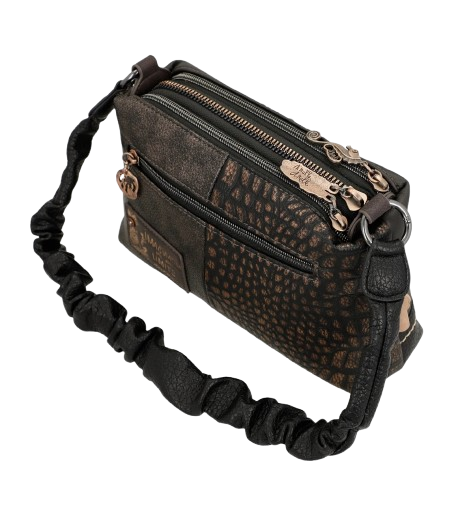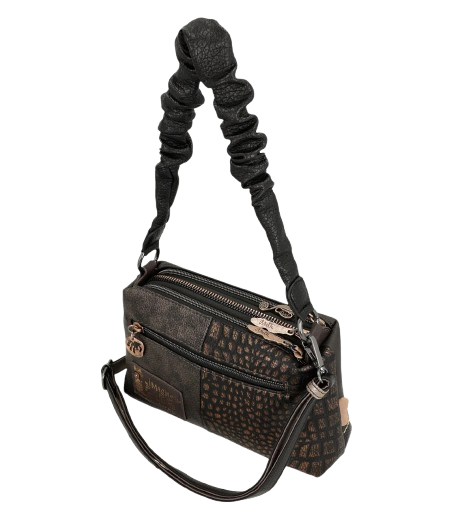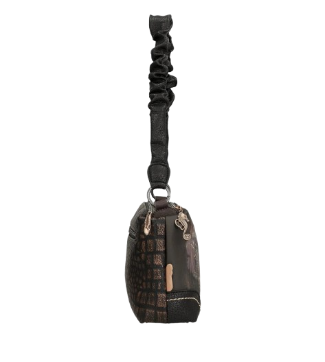 Je vyrobena z kvalitních materiálů, s pečlivým důrazem na detaily. Pohodlný ramenní popruh s ozdobnými záhyby umožňuje snadné nošení a její velikost je ideální pro každodenní použití. Kombinace tmavších barev a jemného potisku přidává kabelce nádech elegance, díky čemuž bude perfektním doplňkem jakéhokoli outfitu.
