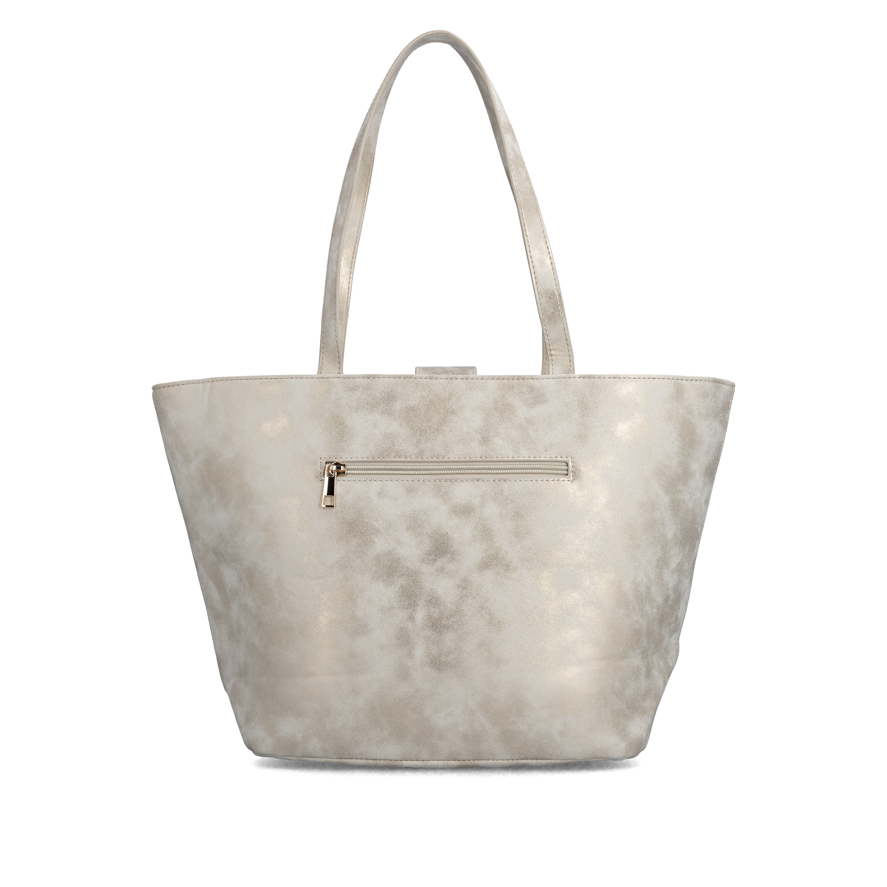 Kabelka v bílé barvě. Kabelka má hlavní kapsu na zip a vnitřní zipovou kapsu. Na zadní straně vně kabelky je další kapsa na zip. Je vyrobena ze syntetického materiálu a podšívka je textilní. Dokumenty A4 se do kabelky vejdou. Rozměry kabelky jsou 42,5 x 27 x 15,5 cm.