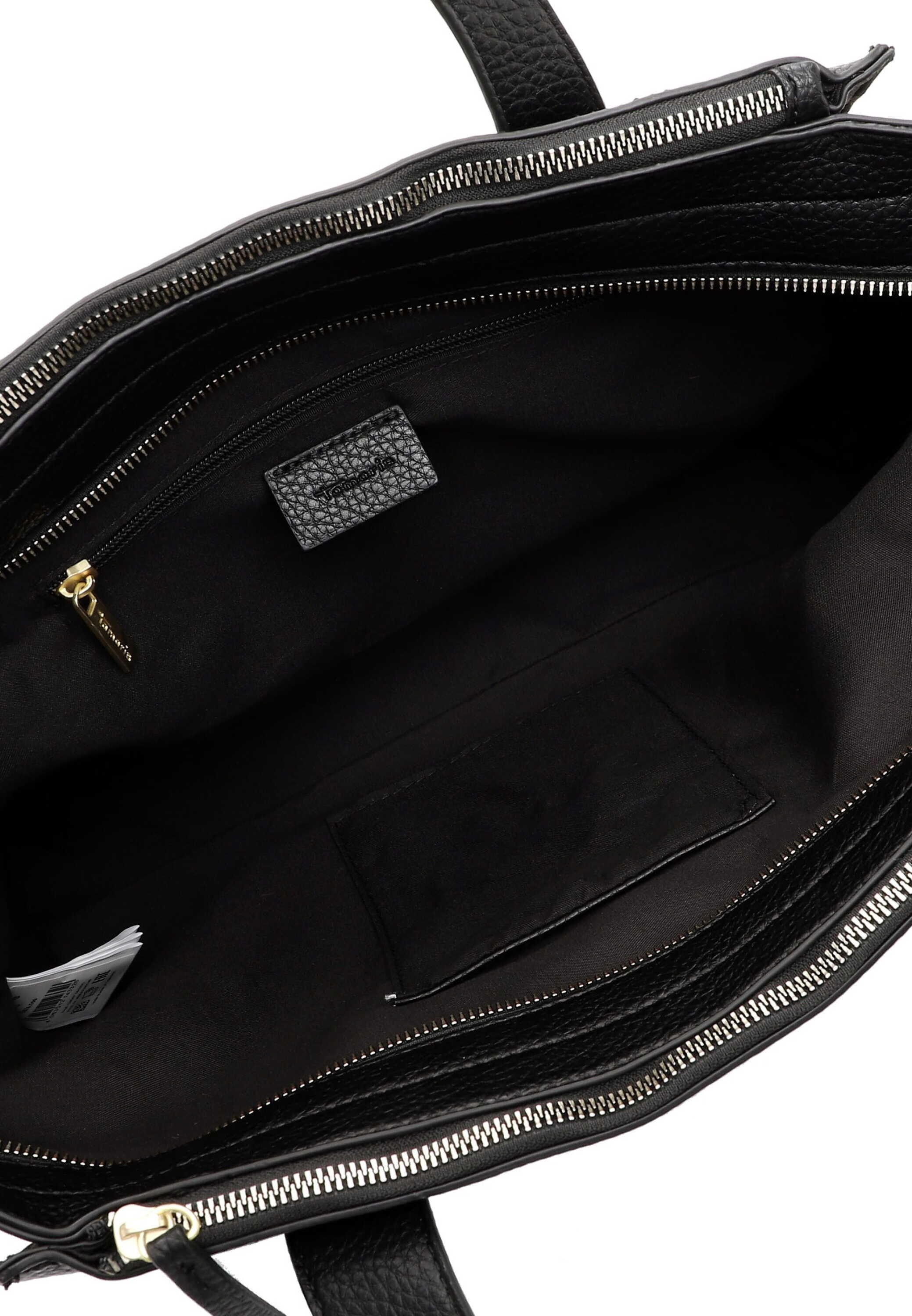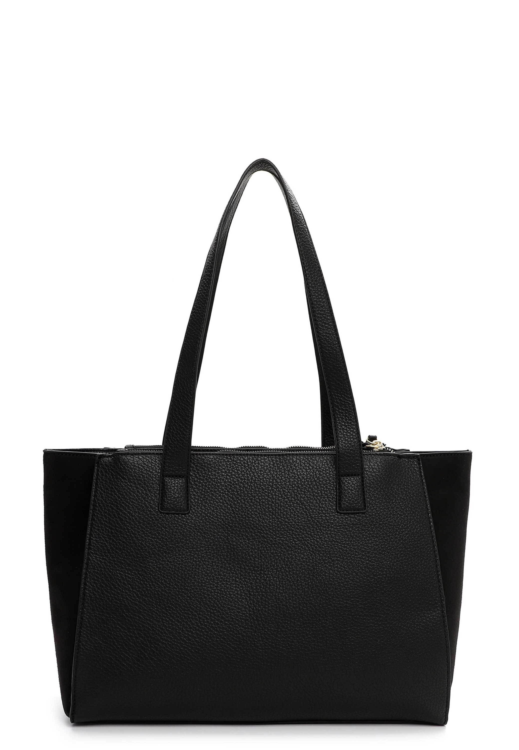 Shopper v elegantní černé barvě se zlatými detaily kombinuje praktičnost s nadčasovým stylem. Prostorný hlavní oddíl a zipová přihrádka na zádech pojmou vše potřebné, zatímco jemné zlaté doplňky dodávají kabelce luxusní nádech. Vrchní materiál je syntetika. Vnitřní materiál je textil. Kabelka má hlavní kapsu na zip a uvnitř jsou menší kapsy na drobnosti. Kabelka je v černé barvě. Rozměry kabelky jsou 29 cm x 47 cm x 13 cm.