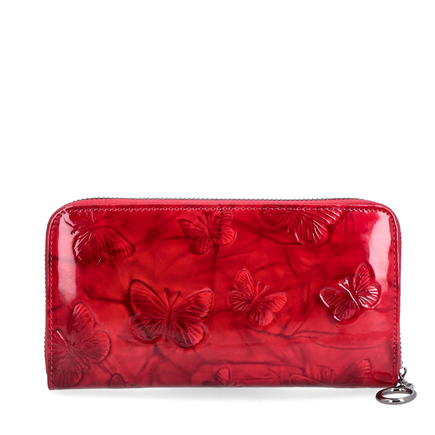 Lakovaná peněženka s motivem motýlů je skvělým doplňkem pro každou ženu, která si potrpí na luxusní design a kvalitní zpracování. Peněženka je vyrobena z pravé kůže, která je nejen odolná, ale také velmi elegantní. Povrch peněženky je lakovaný, což jí dodává lesklý a sofistikovaný vzhled. Krásný motiv motýlů přidává peněžence na originalitě a ženskosti. Vnitřní uspořádání nabízí dostatek prostoru pro karty, bankovky a mince, takže budete mít všechny své cennosti přehledně uspořádané. Peněženka je vyrobena z lakované kůže. Rozměry peněženky jsou 19 cm x 10 cm x 2,5 cm. Vtniřním uspořádáním má peněženka: