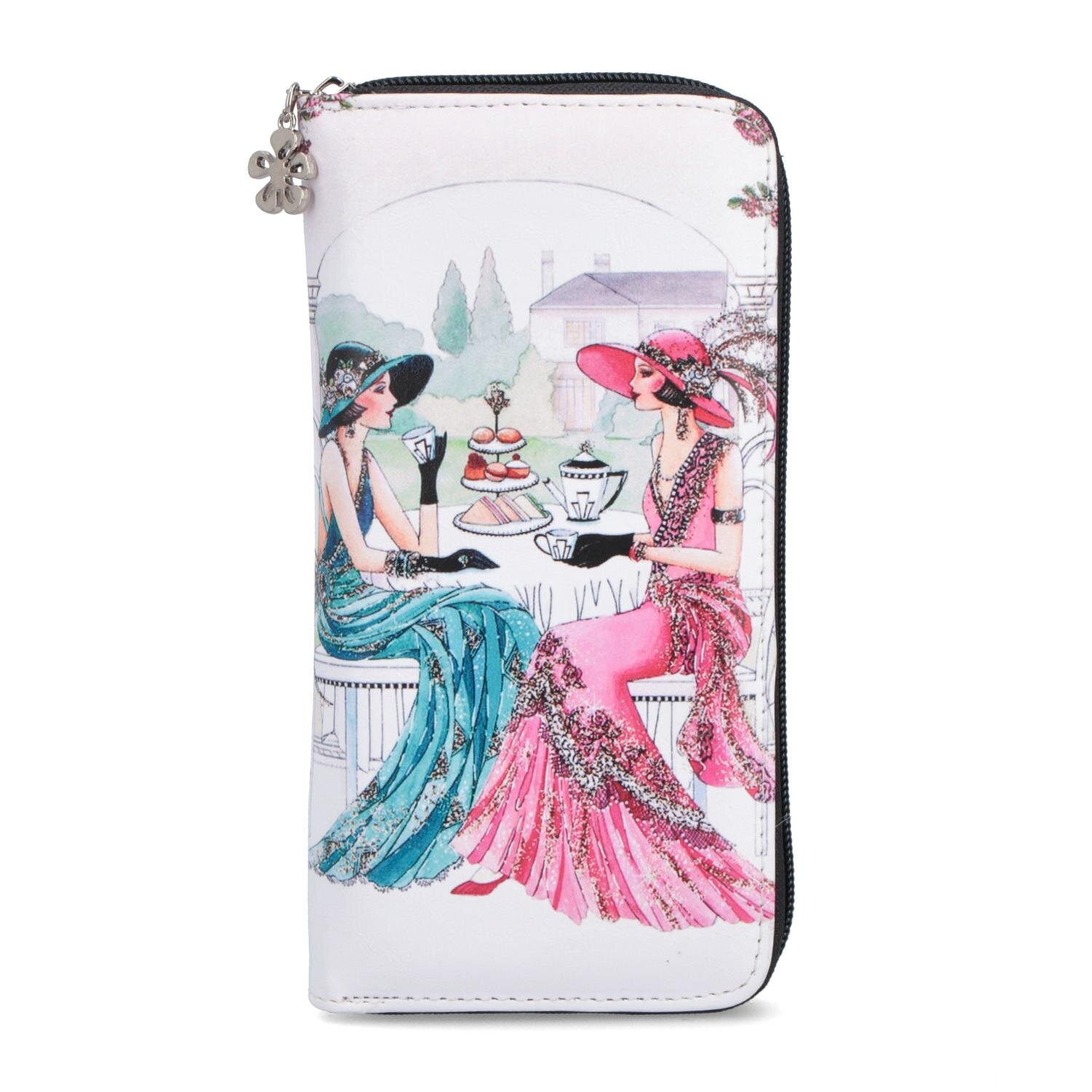 Dámská peněženka s potiskem elegantních dam popíjející čaj. Peněženka je vyrobena ze syntetiky a vnitřní materiál je textil. Rozměry peněženky jsou 19,5 x 9,5 x 2,5 cm. Peněženka obsahuje: