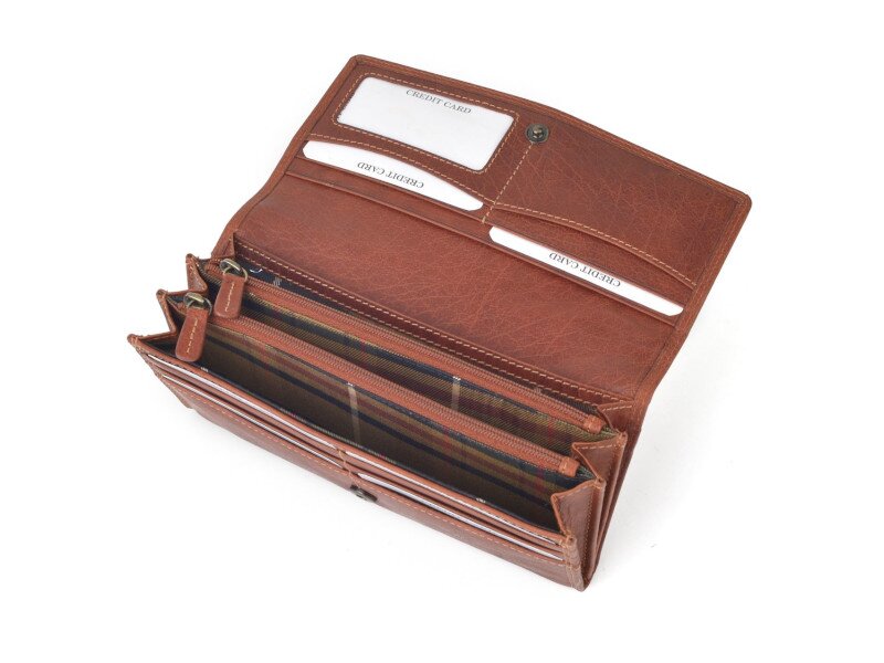 Dámská kožená peněženka je praktickým a elegantním doplňkem pro každodenní použití. Nabízí dvě vnitřní zipové kapsy, přihrádky pro přehledné uložení bankovek, karet i dalších nezbytností.