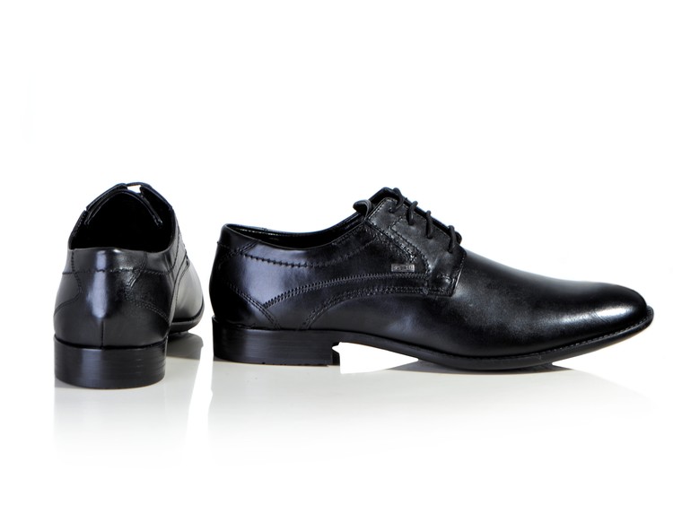 Pánské společenské polobotky. Vrchní materiál je hladká useň. Vnitřek obuvi je kombinace textilu a syntetiky. Nášlapná stélka je syntetická, vyměkčená. Barva u tohoto vzoru je černá. Podešev je syntetická, flexibilní. Výška podpatku je cca 2cm.